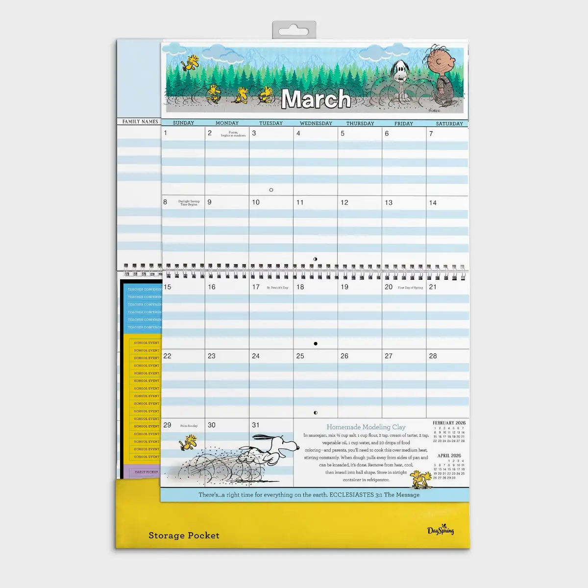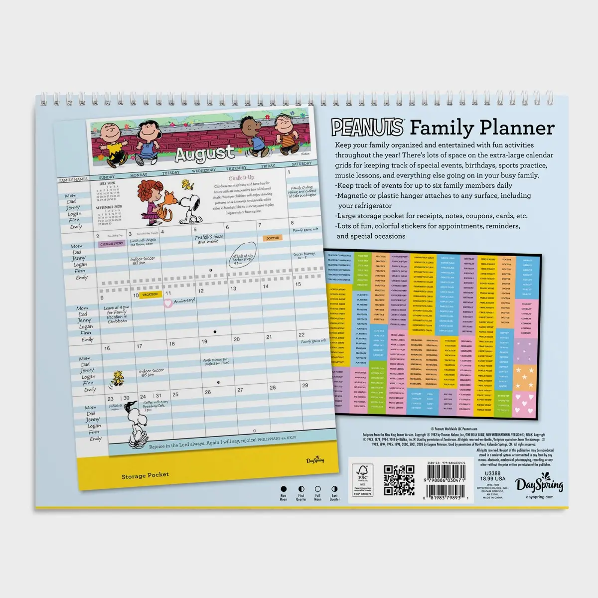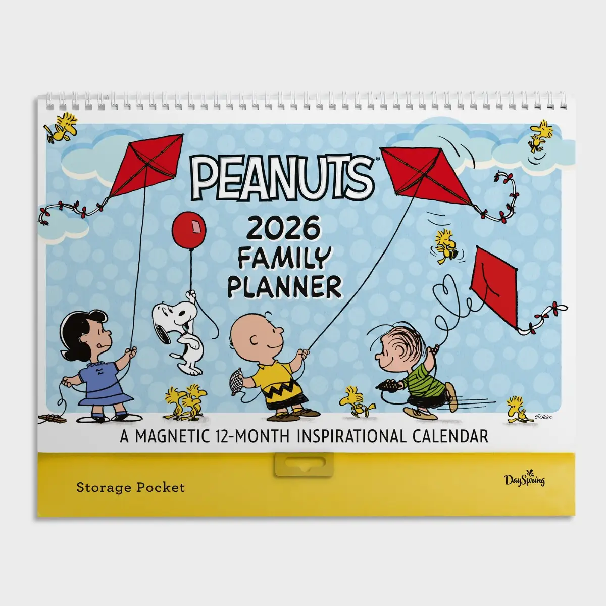 2026 12-Month Family Planner Calendar: Peanuts, with 300+ stickers and magnetic clasp for hanging