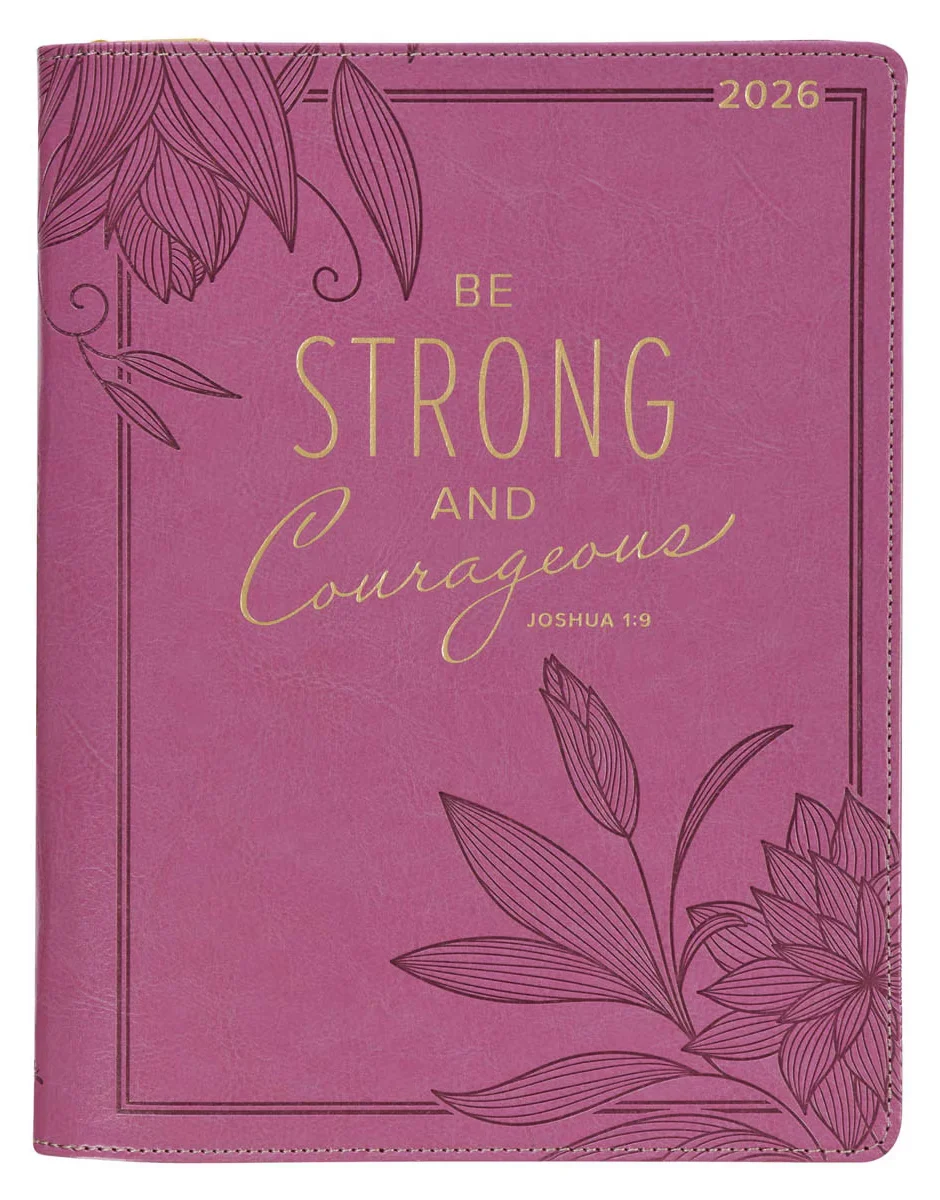 2026 18-Month Diary/Planner, Zippered: Be Strong & Courageous (Joshua 1:9) Pink