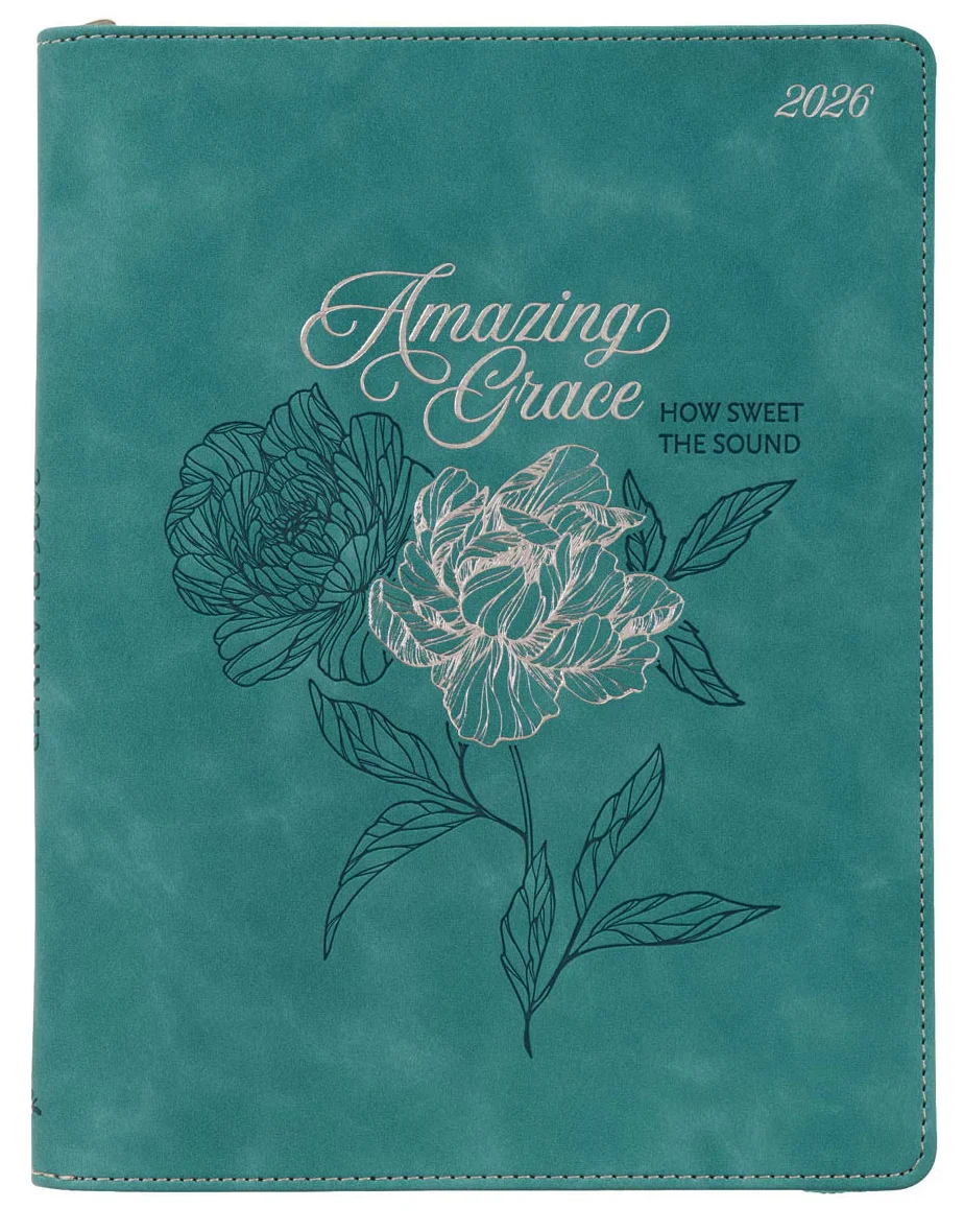 2026 18-Month Diary/Planner, Zippered: Amazing Grace, Green