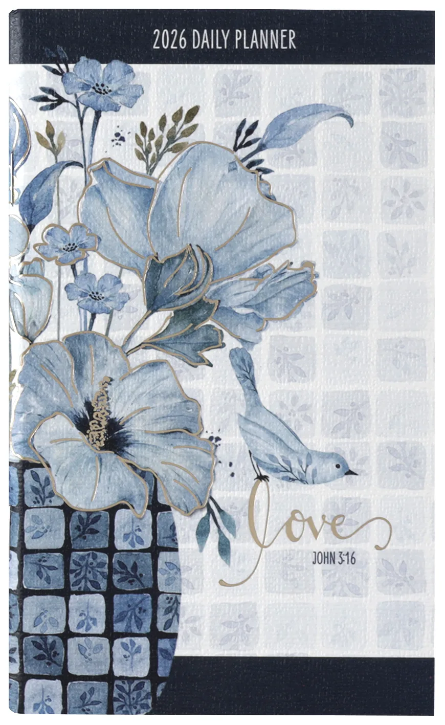 2026 24-Month Daily Diary/Planner: Love ( John 3:16) Blue Checkered Floral