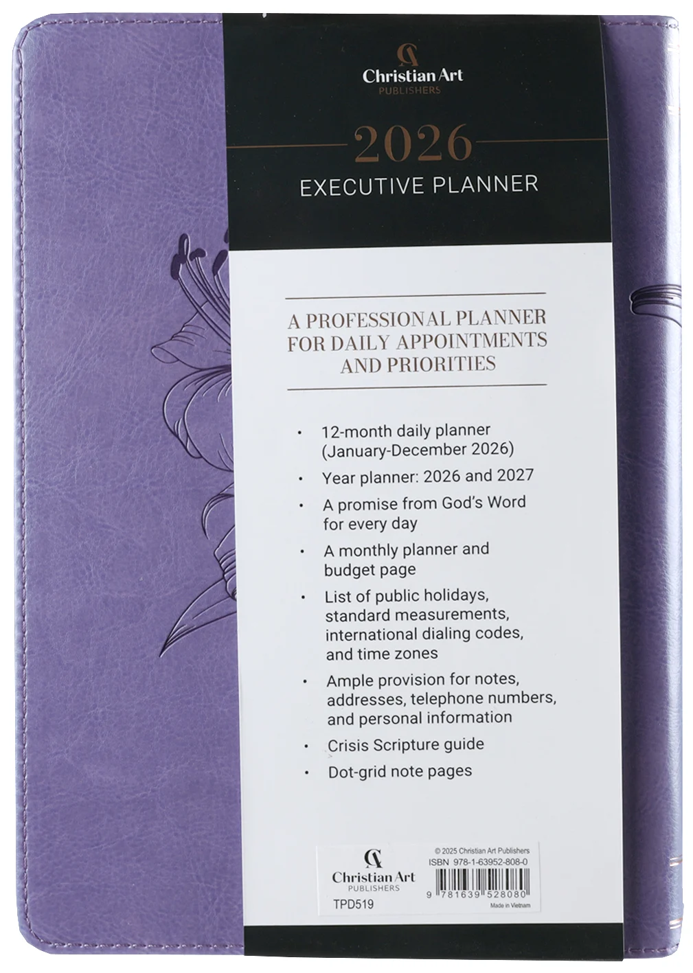 2026 Executive Diary/Planner, Zippered: Amazing Grace, Purple
