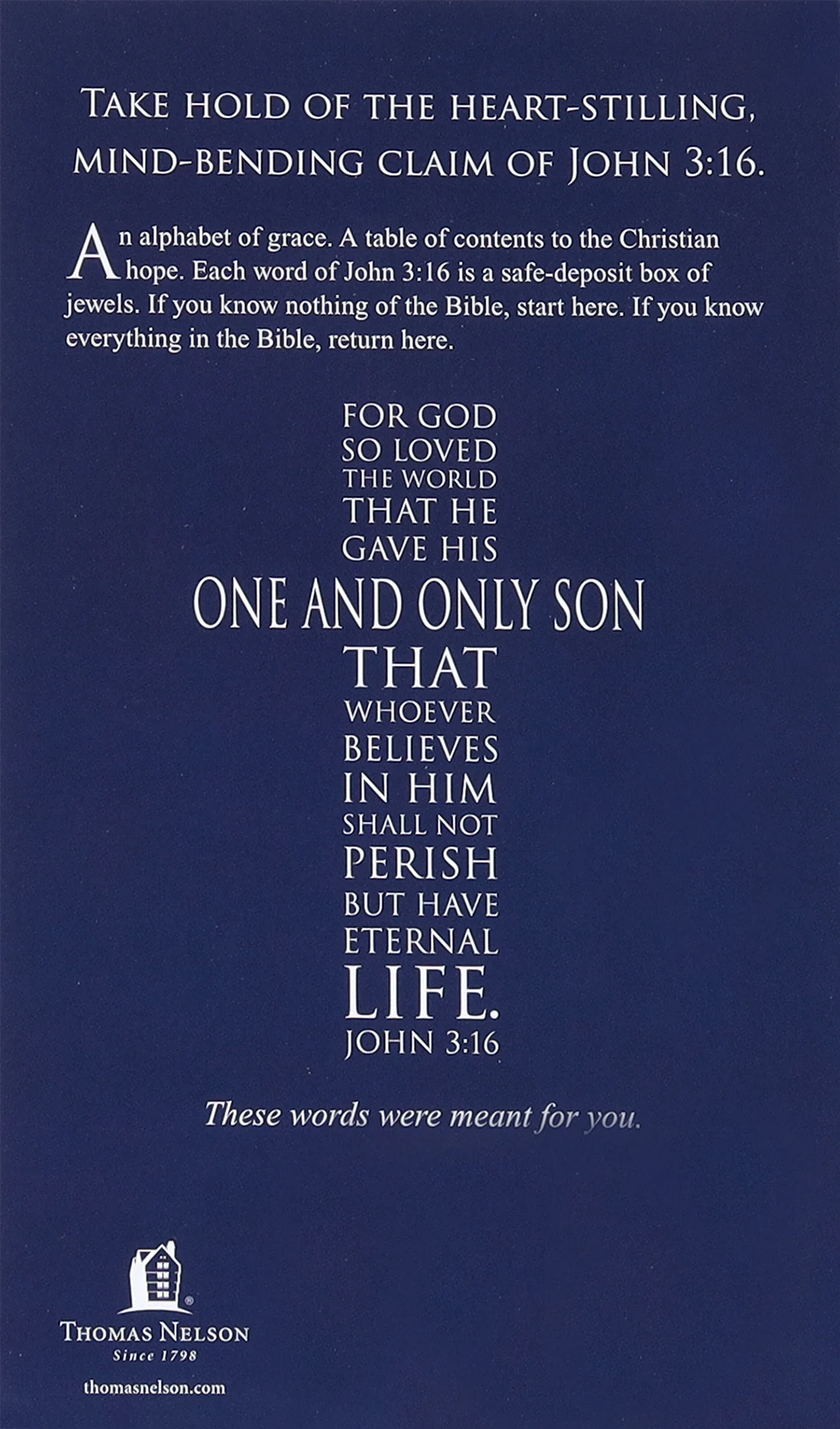 Based on Max Lucado's bestselling book 3:16: The Numbers of Hope, The 3:16 Promise is a 64-page evangelistic booklet that journeys word-by-word through John 3:16, the passage Max calls the "Hope Diamond" of Scripture. This twenty-six-word parade of hope begins with God, ends with life, and urges us to do the same.