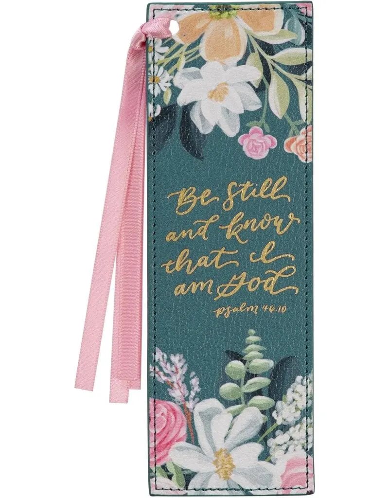 Let us know & we’ll match it!Looking for an alternative to dog-eared pages? The Be Still and Know Teal Floral Faux Leather Bookmark will save those corners, brighten your page, and bring a sense of peace and calm to your reading.