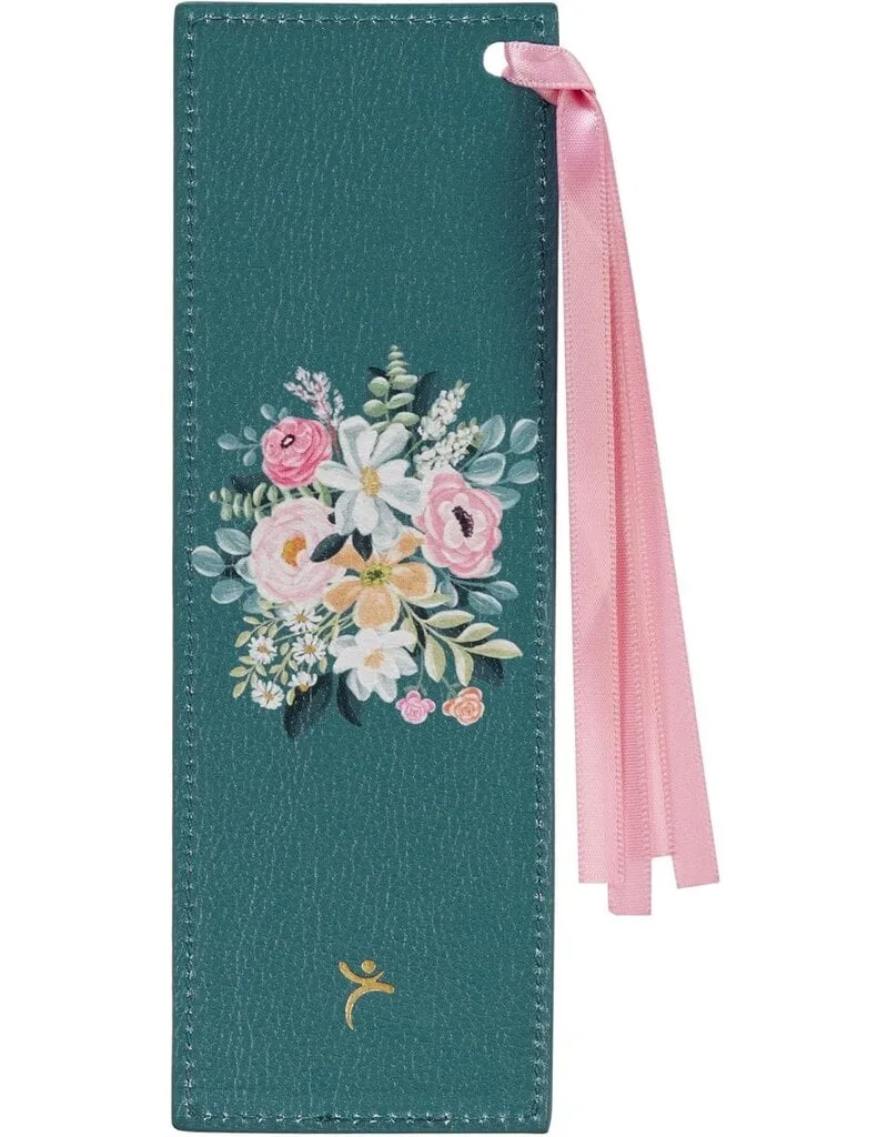 Looking for an alternative to dog-eared pages? The Be Still and Know Teal Floral Faux Leather Bookmark will save those corners, brighten your page, and bring a sense of peace and calm to your reading.