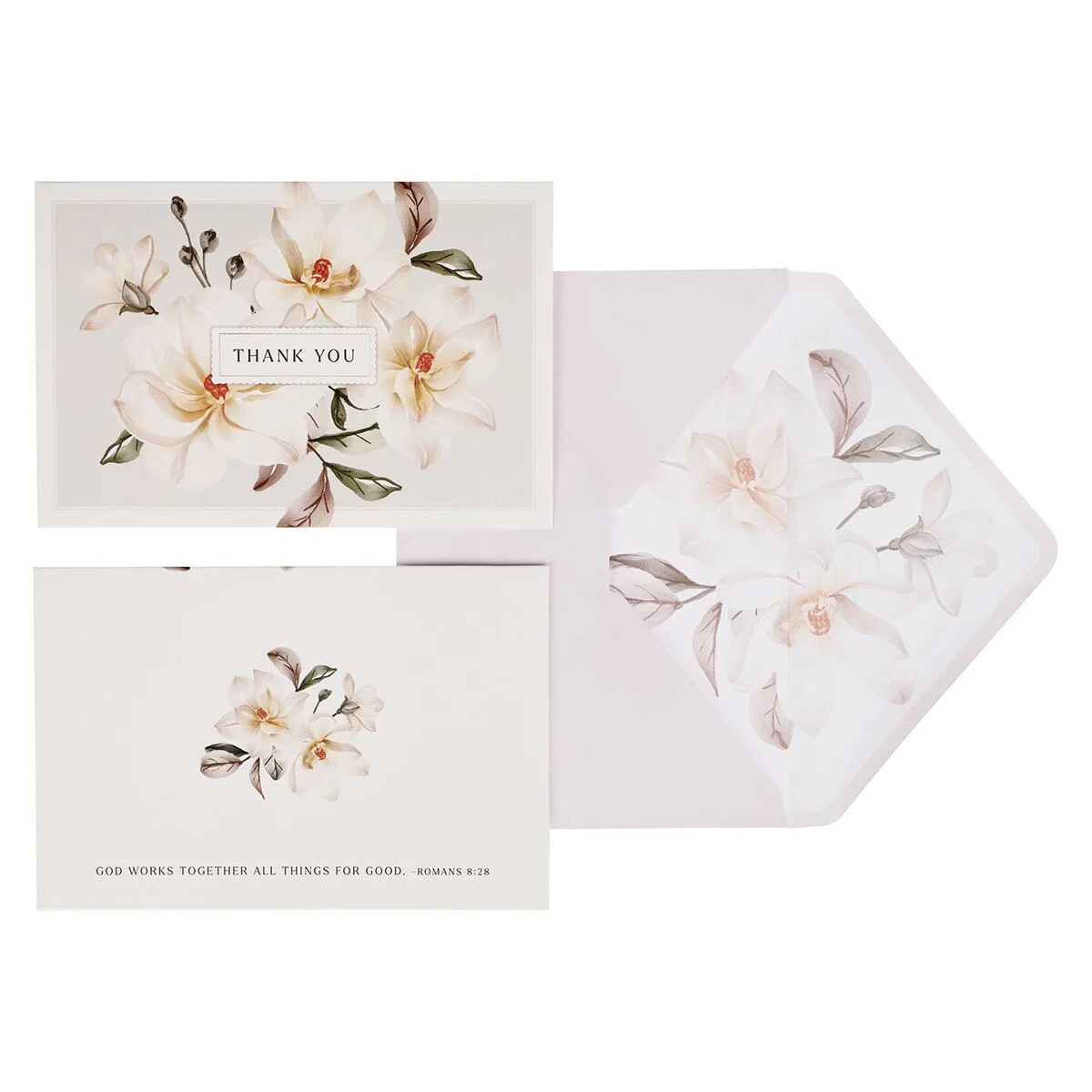 Let us know & we’ll match it!The White Magnolia Thank You Note Card Set is an elegant way to let someone know just how much their kindness, thoughtfulness, and care meant to you.