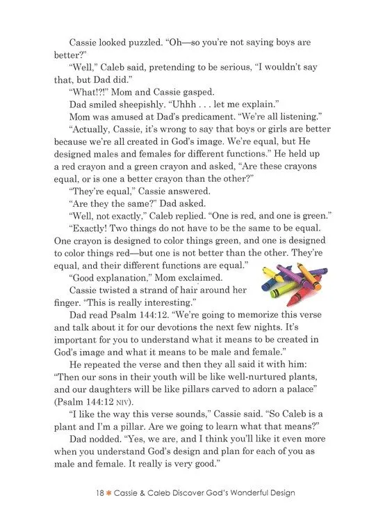 Boys and girls, from 5 to 8 years of age, will love the fun world of Cassie and Caleb, two energetic and inquisitive children discovering the beauty of God's wonderful design.