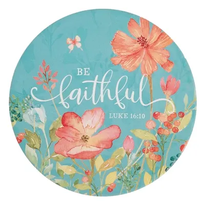 Ceramic Trivet Be Faithful, Light Blue With Flowers (Cork Base) (Grateful Collection)