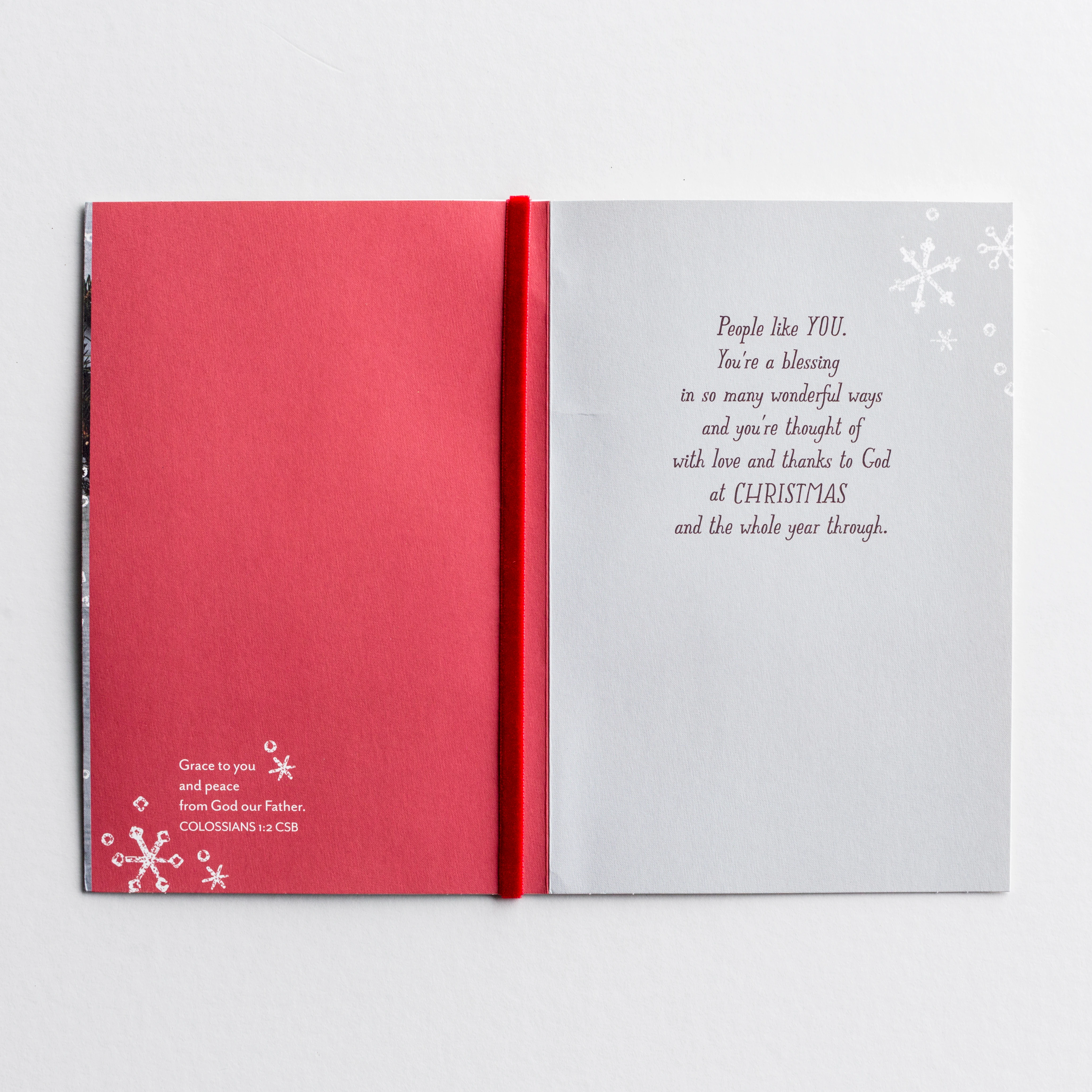 Inside: People like you. You're a blessing in so many wonderful ways and you're thought of with love and thanks to God at Christmas and the whole year through.