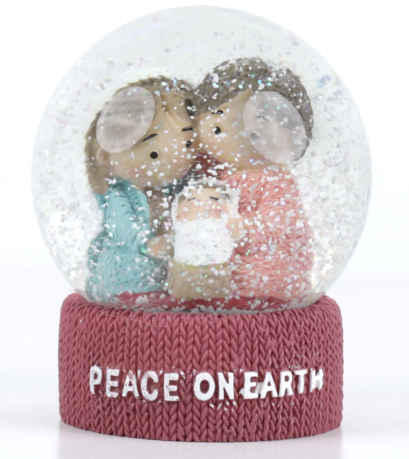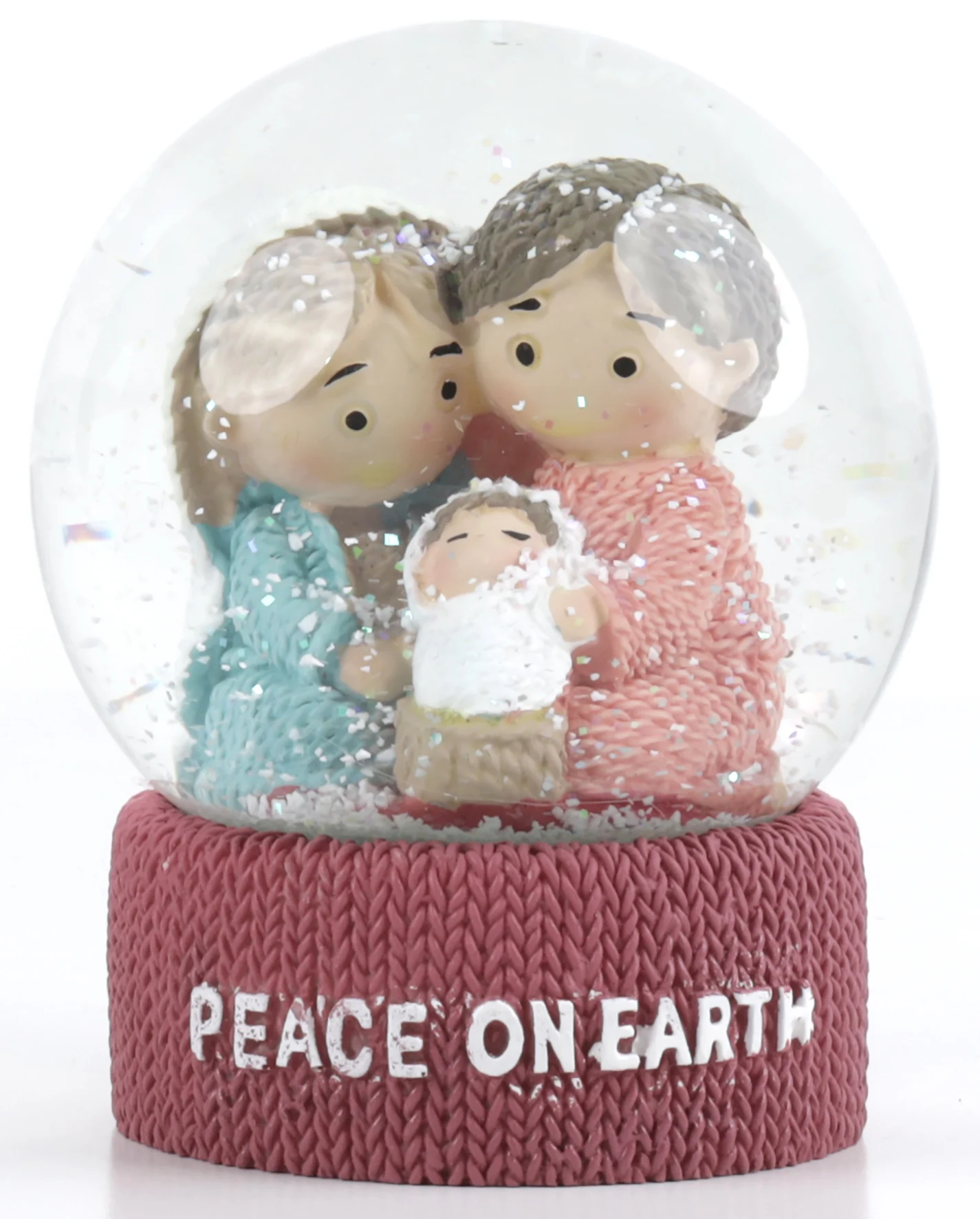 Christmas Water Globe: Peace on Earth Nativity (knitted look resin)