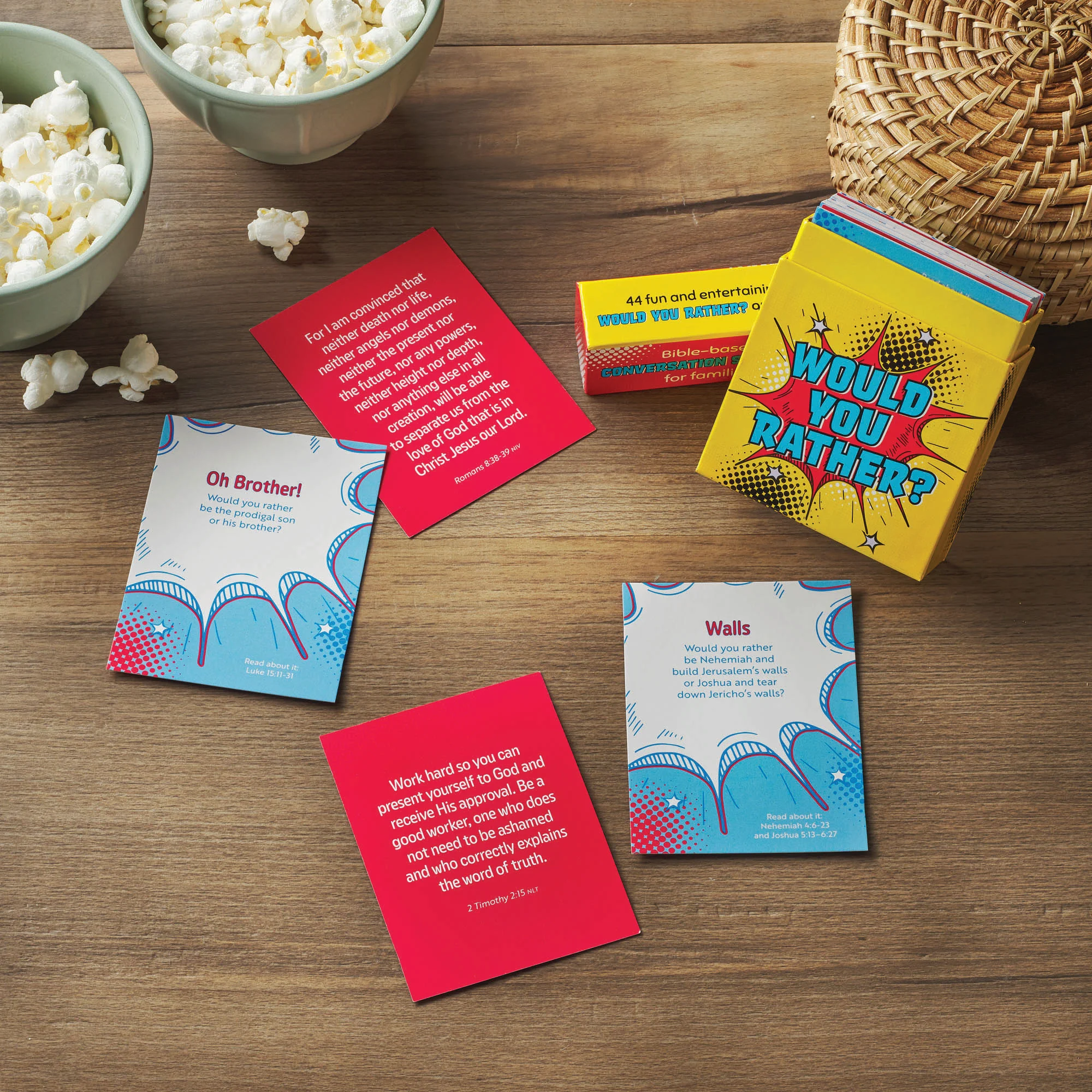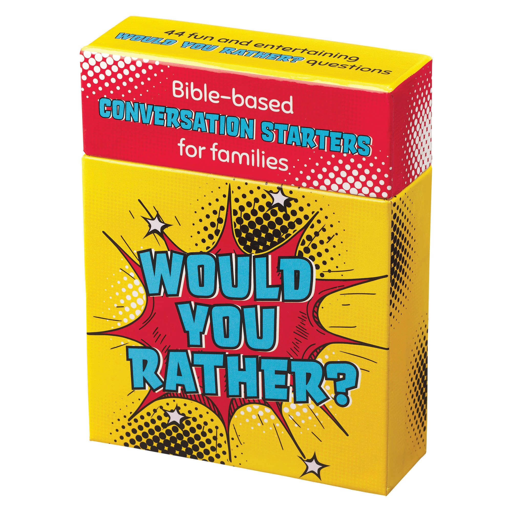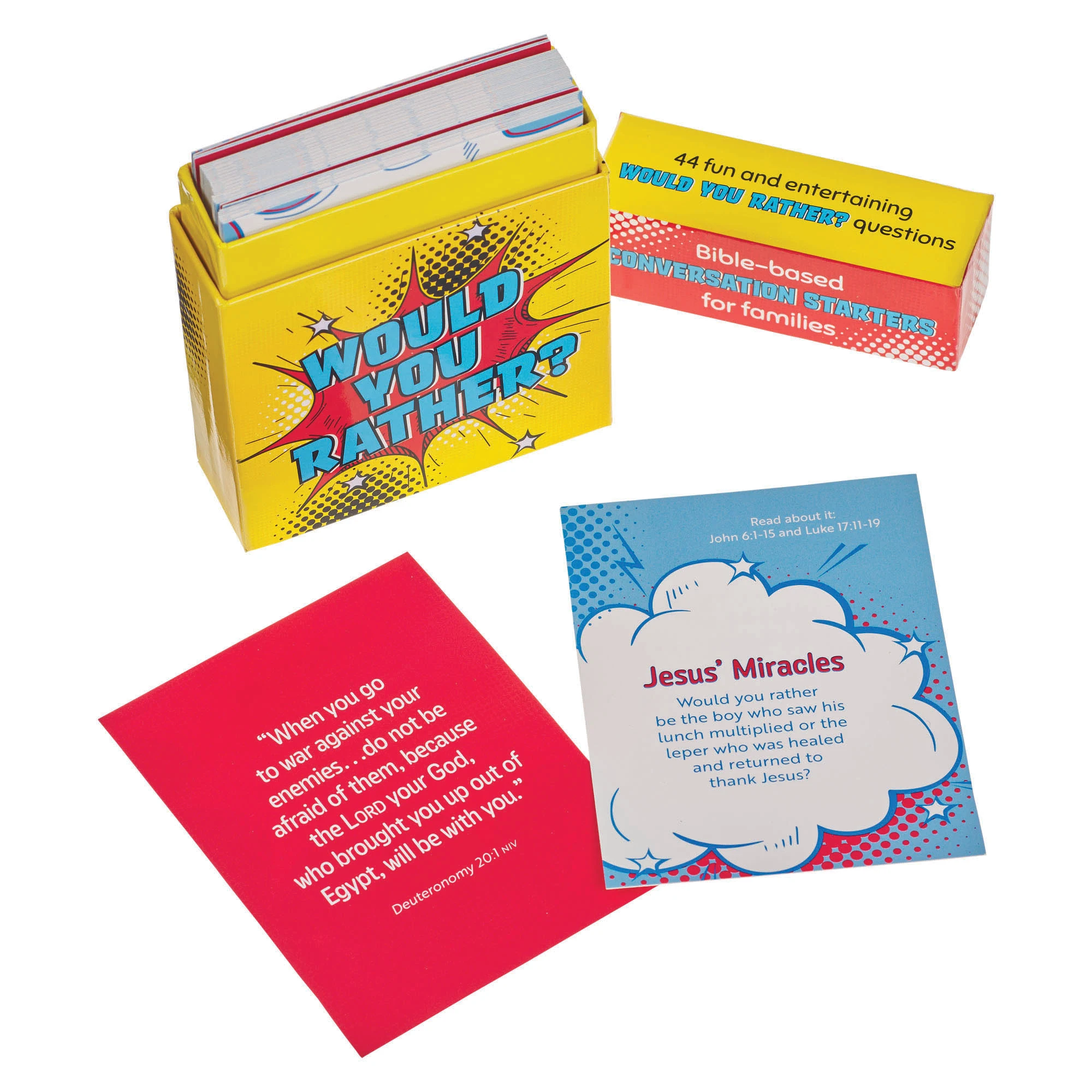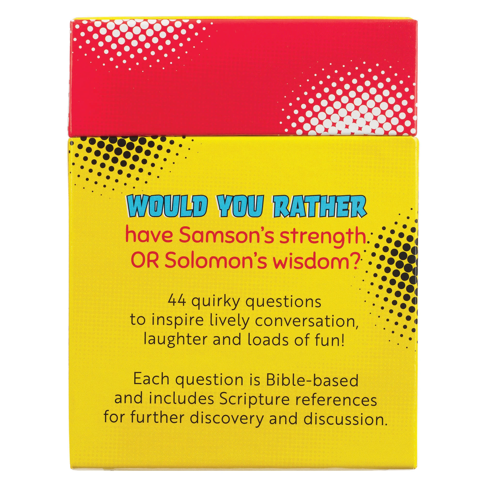 Let us know & we’ll match it!Ignite meaningful conversations and bring loads of laughter to your family time with the Would You Rather Boxed Card Game. This game is filled with quirky and silly questions based on Bible characters and events that will invite conversation and make learning about the Bible fun!