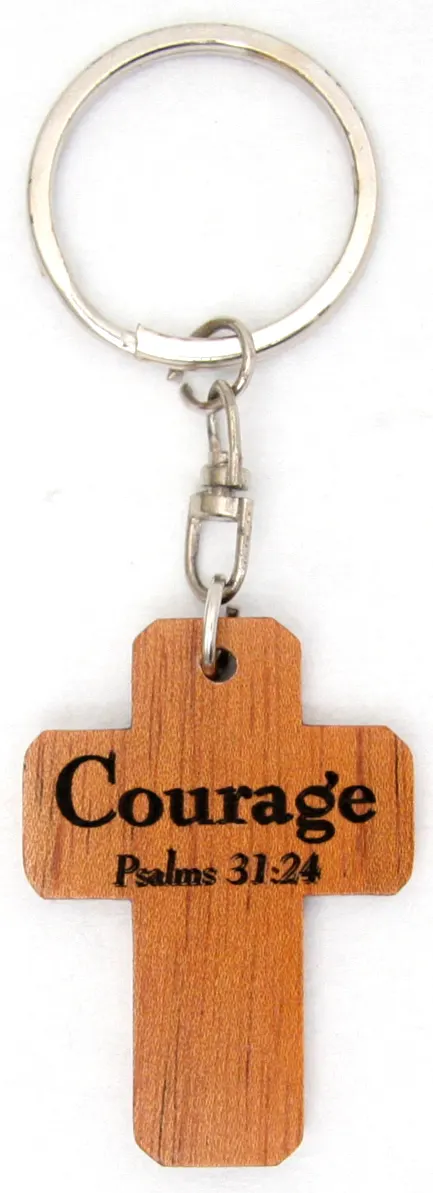 Cross Keyring: Courage Psalm 31:24 (Mahogany)