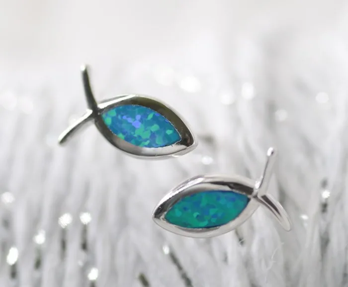 Earrings: Ichthus Blue Opal, Sterling Silver accented with Blue Opal. Posts with Push Backs