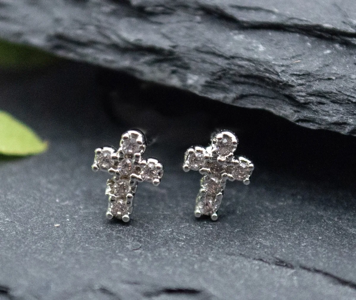Glimmer Earrings, Sterling Silver Posts: Silver Cross Studs, Cubic Zirconia Accents, Gift Boxed