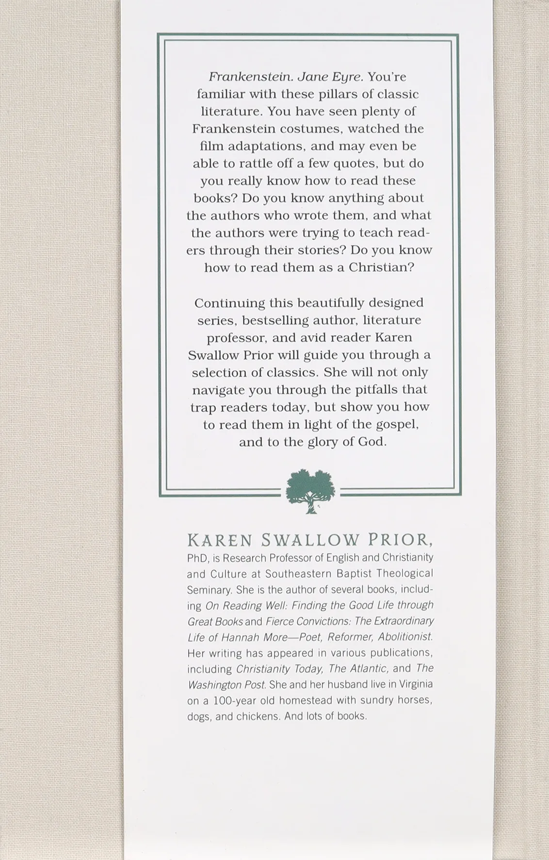 Jane Eyre. Frankenstein. The Scarlet Letter. You're familiar with these pillars of classic literature. You have seen plenty of Frankenstein costumes, watched the film adaptations, and may even be able to rattle off a few quotes, but do you really know how to read these books? Do you know anything about the authors who wrote them, and what the authors were trying to teach readers through their stories? Do you know how to read them as a Christian? Taking into account your old worldview, as well as that of the author? In this beautiful cloth-over-board edition bestselling author, literature professor, and avid reader Karen Swallow Prior will guide you through Jane Eyre. She will not only navigate you through the pitfalls that trap readers today, but show you how to read it in light of the gospel, and to the glory of God. This edition includes a thorough introduction to the author, context, and overview of the work (without any spoilers for first-time readers), the full original text, as well as footnotes and reflection questions throughout to help the reader attain a fuller grasp of Jane Eyre. The full series currently includes: Heart of Darkness, Sense and Sensibility, Jane Eyre, and Frankenstein. Make sure to keep an eye out for the next classics in the series.