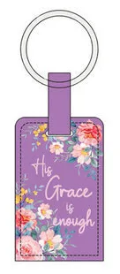 Keyring (Lux-Leather): His grace is enough, Rectangle