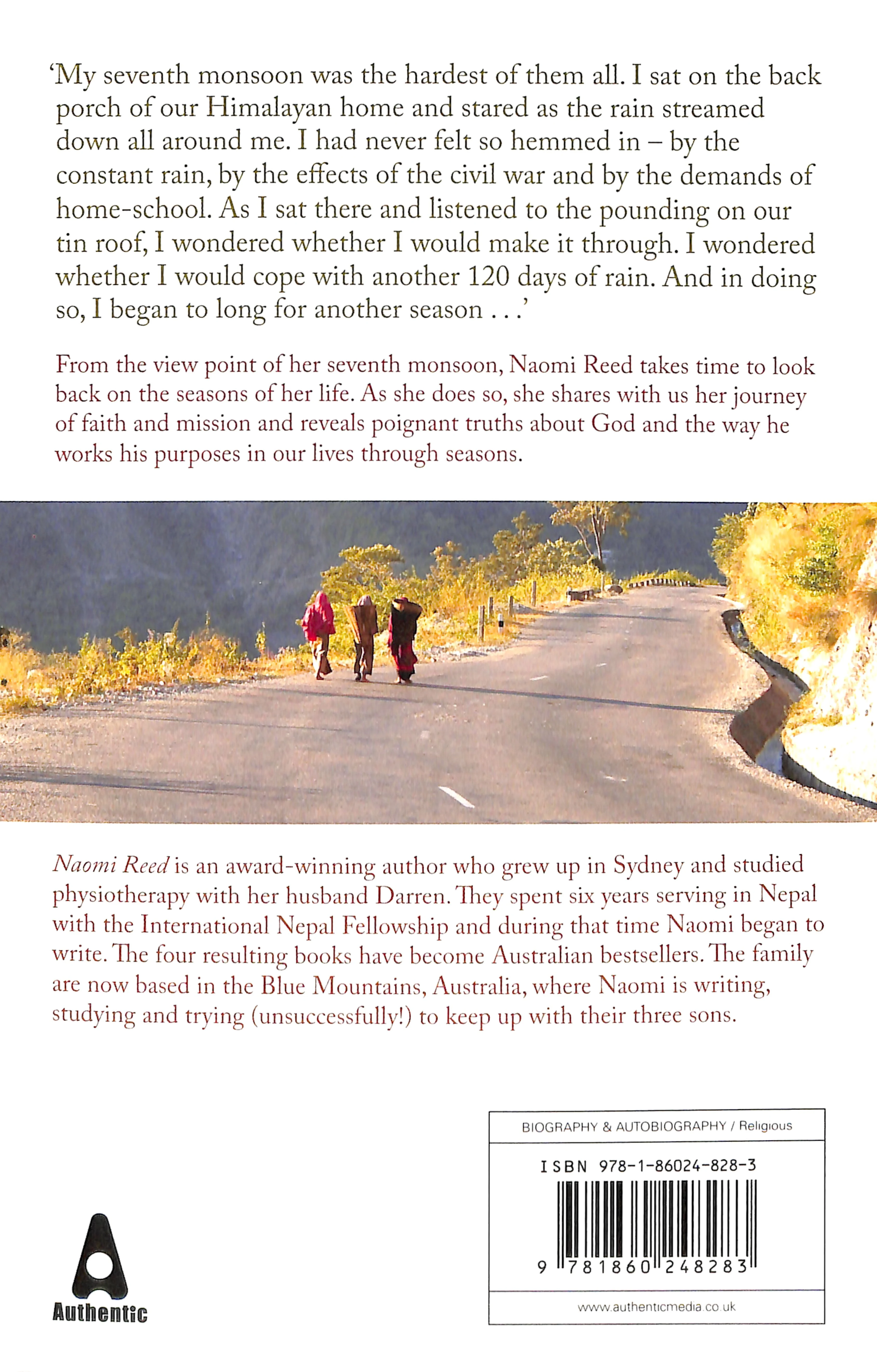 Physiotherapists Darren and Naomi Reed answered God's call to the mission field in 1993, and spent 'seven monsoons' ministering in Nepal. Naomi's engaging account of the struggles and joys of missionary work reveals poignant truths about God and the way he works his purposes through the seasons in our lives.