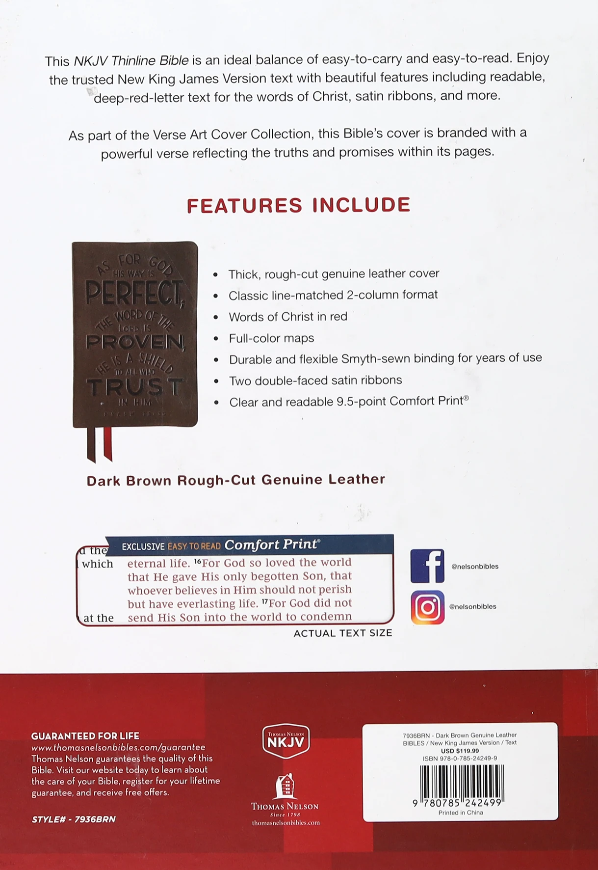 This go-anywhere NKJV Thinline Bible gives you a conveniently sized Bible in a generous print size. This Bible is set in Thomas Nelson's exclusive Comfort Print® type, making your reading experience comfortable and easy. As part of the Verse Art Cover Collection, this edition is beautifully designed with inspirational Scripture verse art on the cover to focus your mind on what is inside.