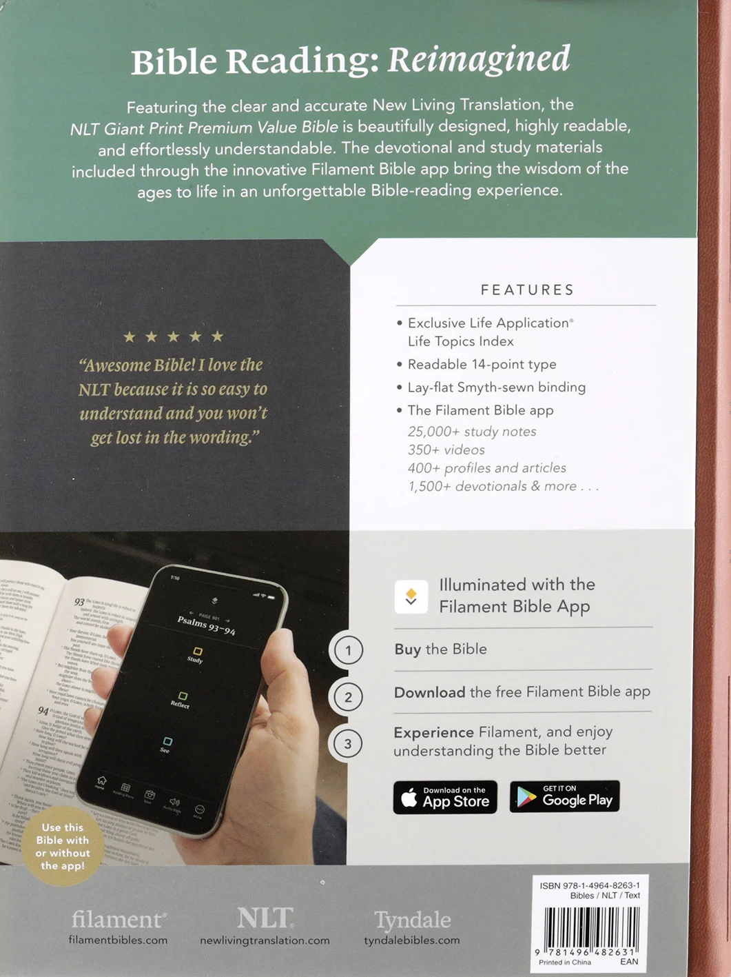 NLT Giant Print Premium Value Bible, Filament-Enabled Edition, British Tan Mountain