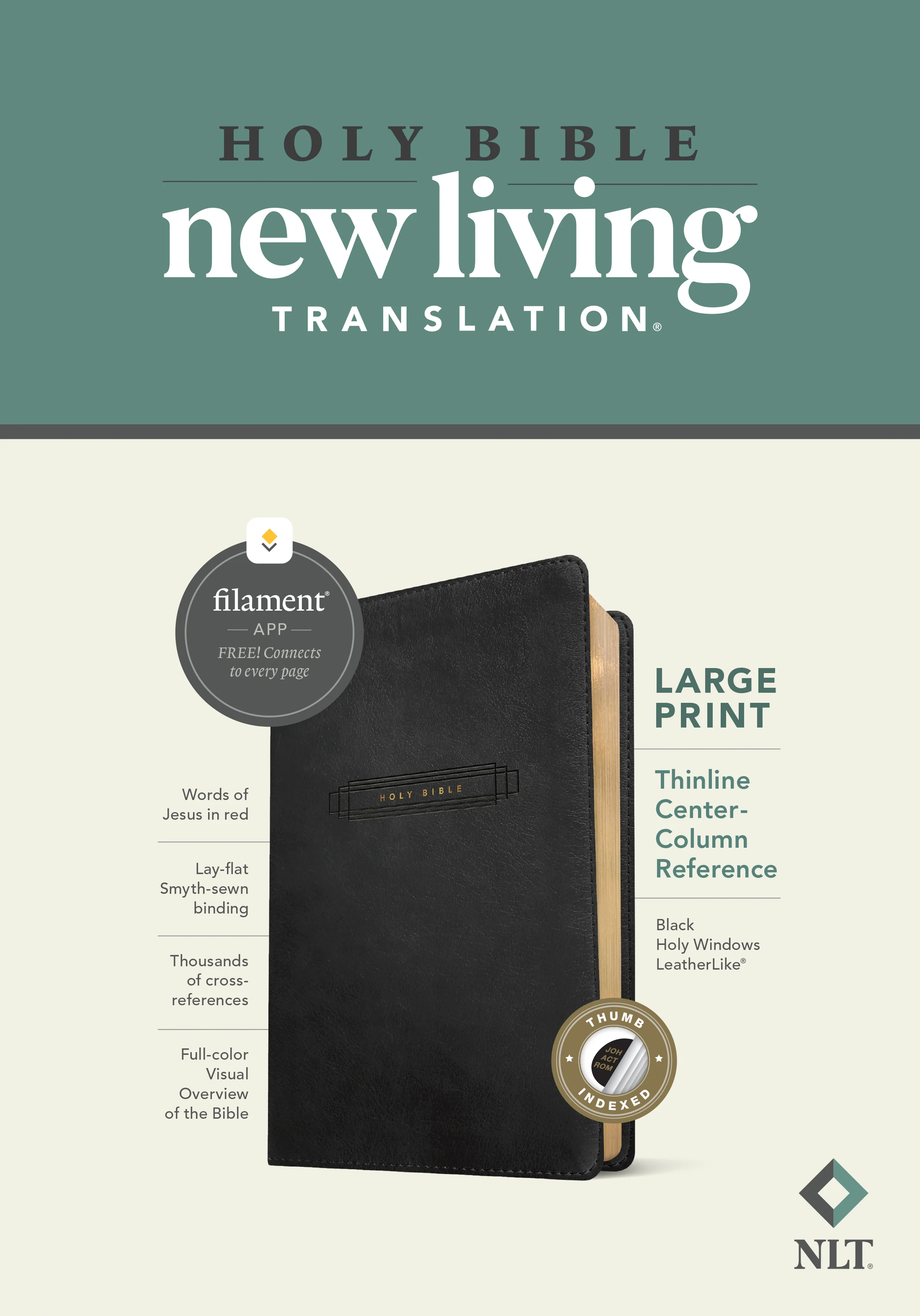 NLT Large Print Thinline Center-Column Reference Bible Black Holy Windows Indexed (Red Letter Edition)