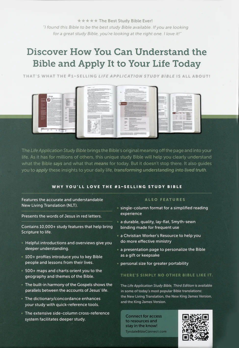 The Life Application Study Bible brings the Bible's original meaning off the page and into your life. As it has done for millions of others, this unique NLT study Bible will help you clearly understand what God's Word says in its context and what that means for you today.