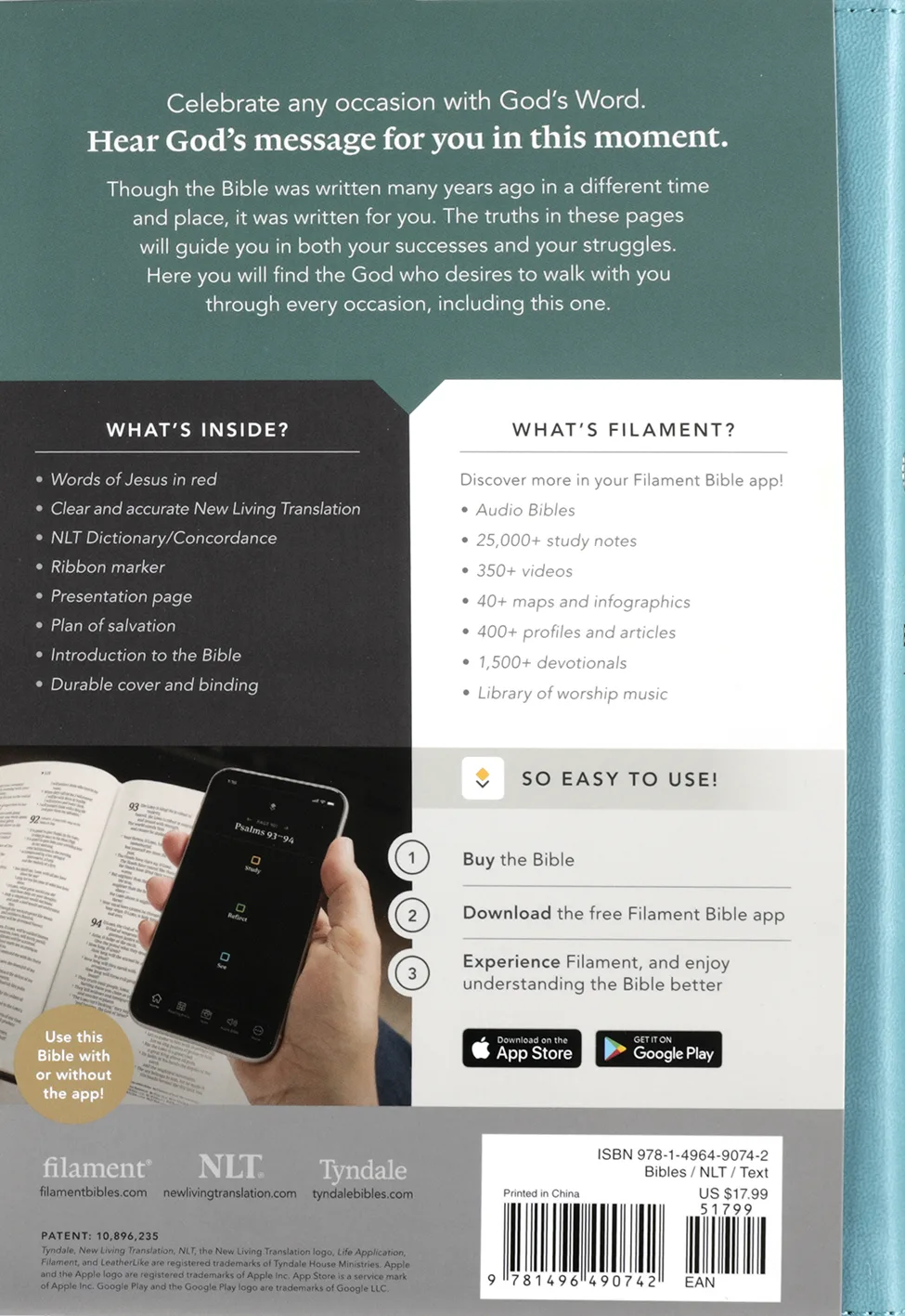 NLT Premium Gift Bible, Filament Enabled, Teal Cross (Red Letter Edition)