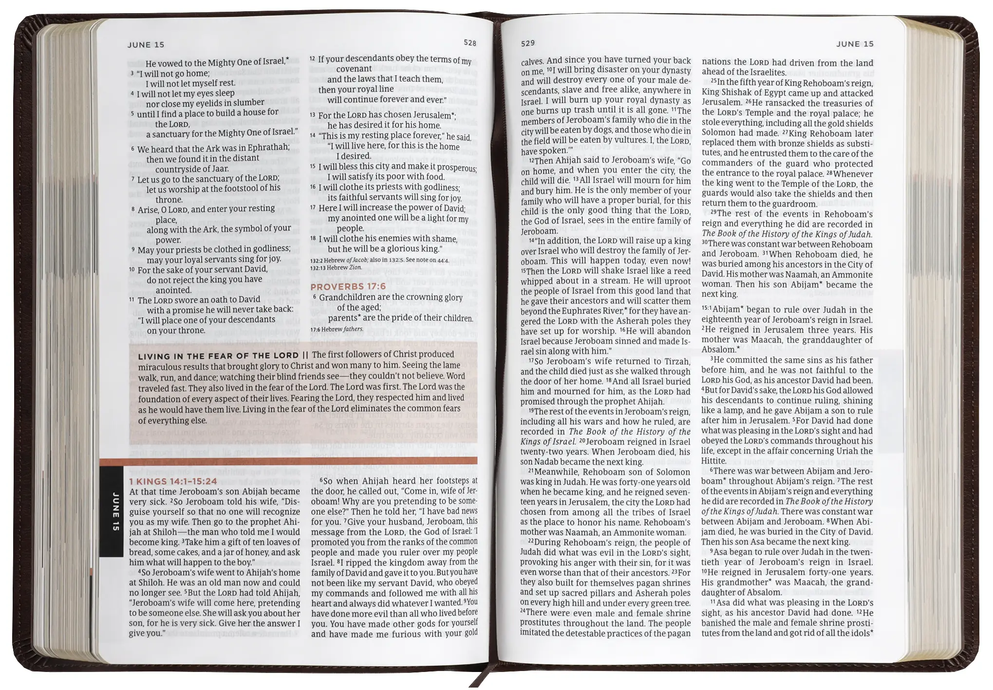 - Daily readings from the Old Testament, New Testament, Psalms, and Proverbs