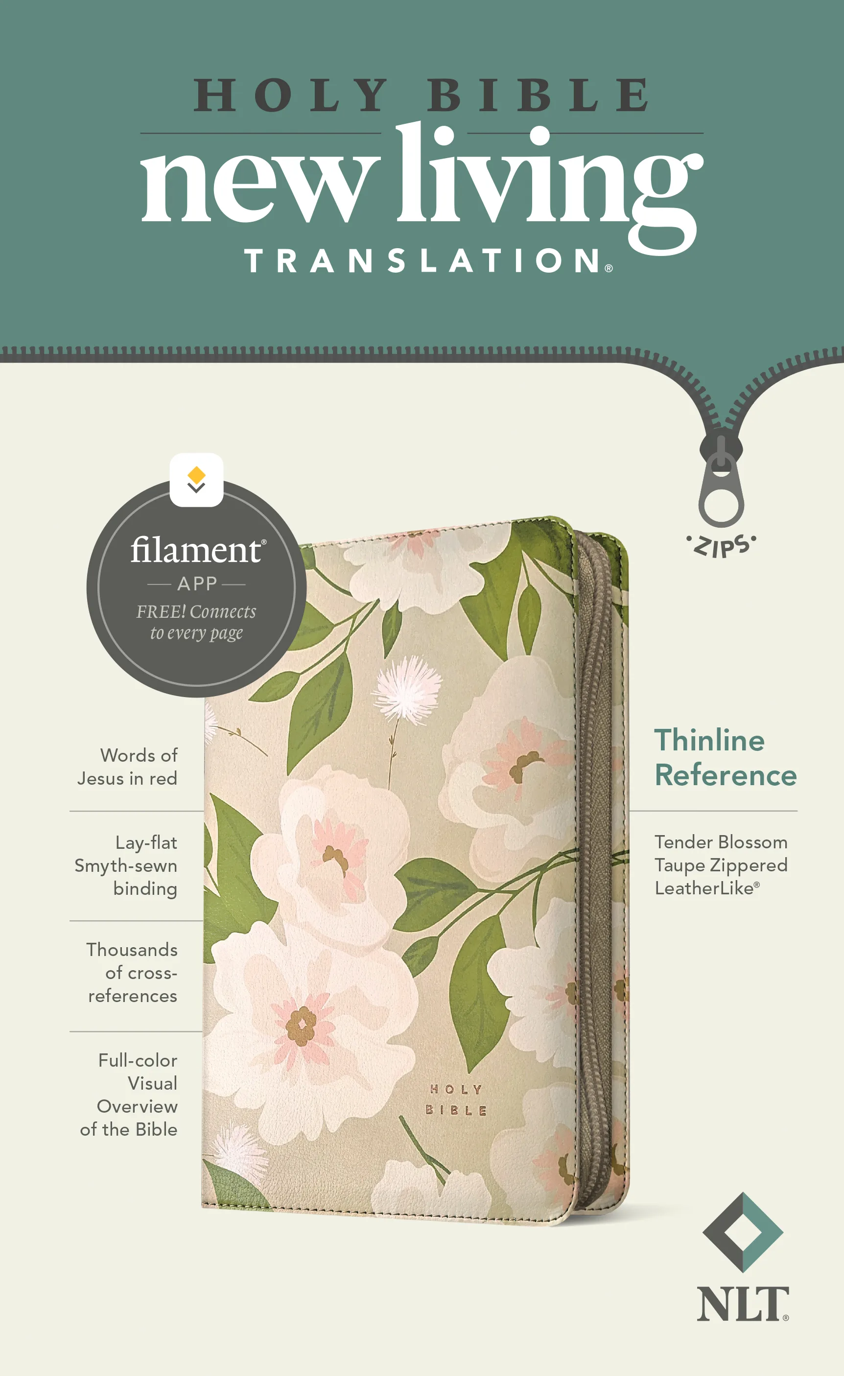 NLT Thinline Reference Zipper Bible Filament Enabled Tender Blossom Taupe (Red Letter Edition)