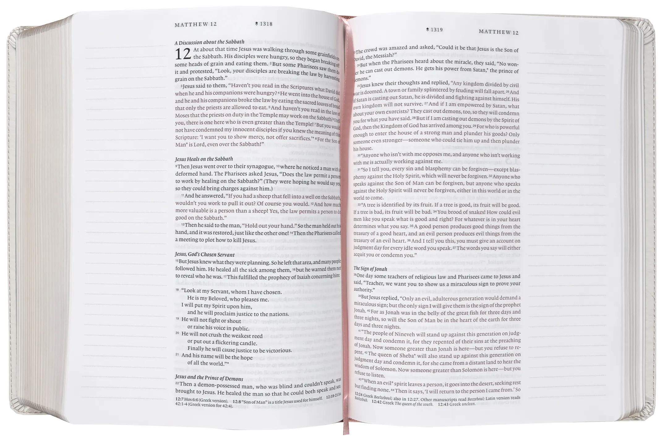This single-column, wide-margin New Living Translation Bible has 2.25" lightly ruled margins, making this Bible great for note-taking, journaling, recording prayers, doodling, drawing, or any other creative expression in response to God's Word.