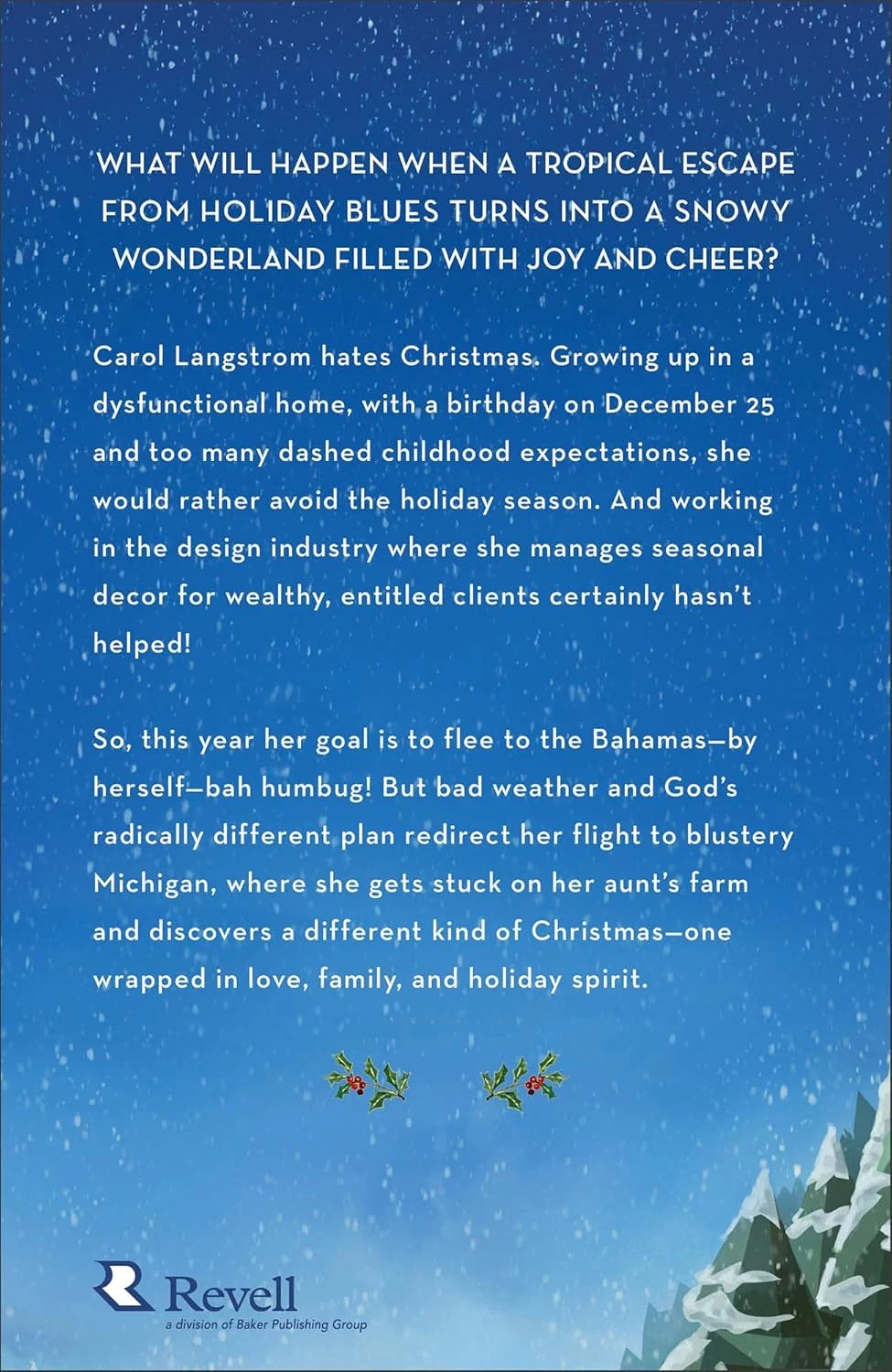 Carol Langstrom hates Christmas. Growing up in a dysfunctional home, with a birthday on December 25 and too many dashed childhood expectations, she would rather avoid the holiday season. And working in the design industry where she manages seasonal decor for wealthy, entitled clients certainly hasn't helped!