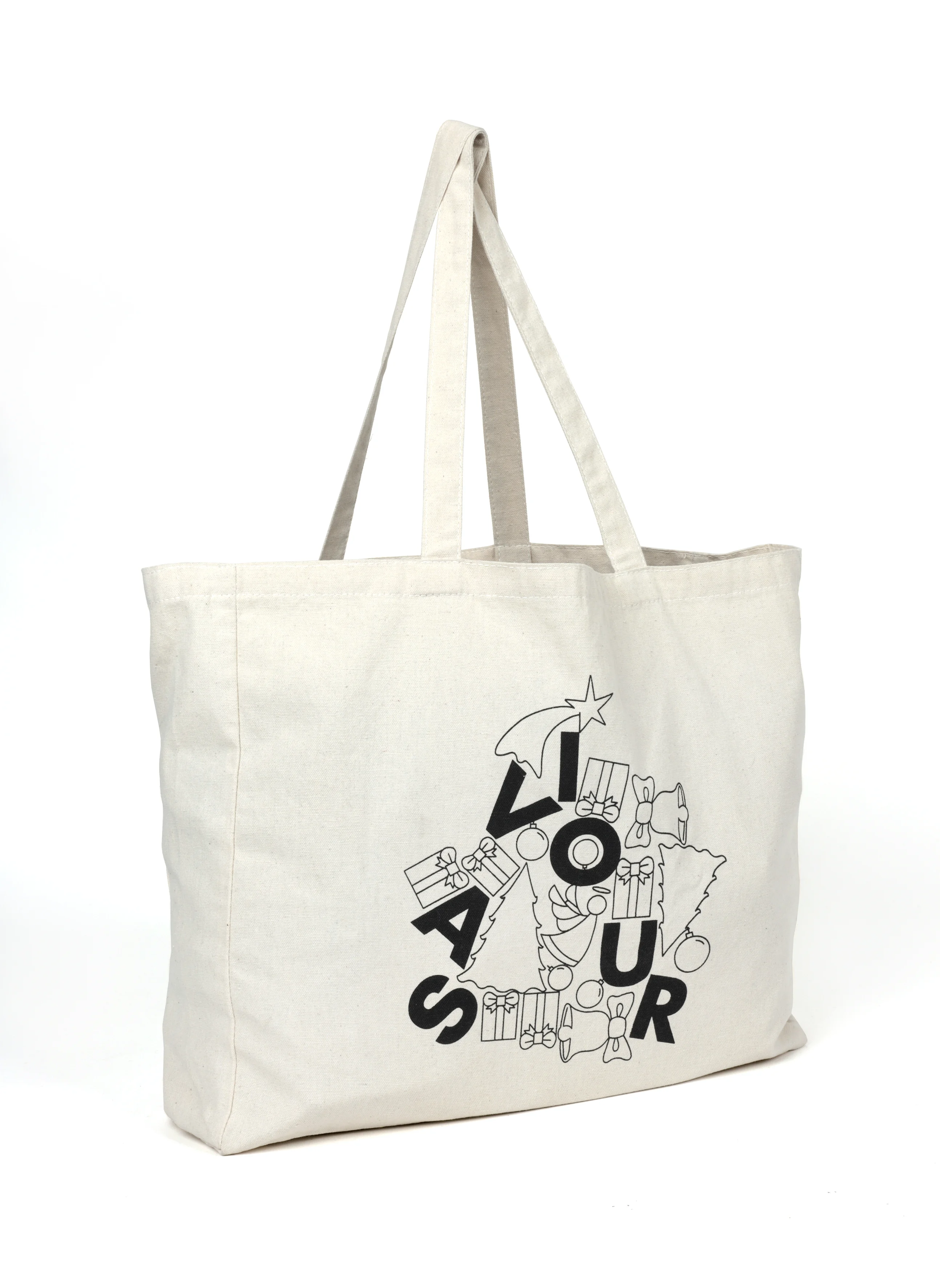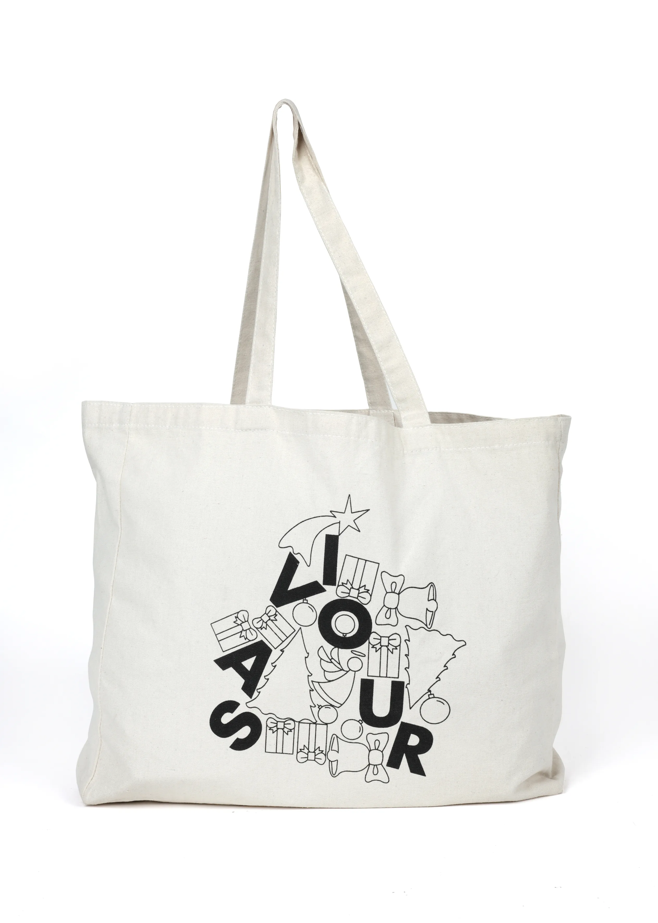 Reusable Christmas Tote Bag: Saviour (8oz Canvas with Black Print)