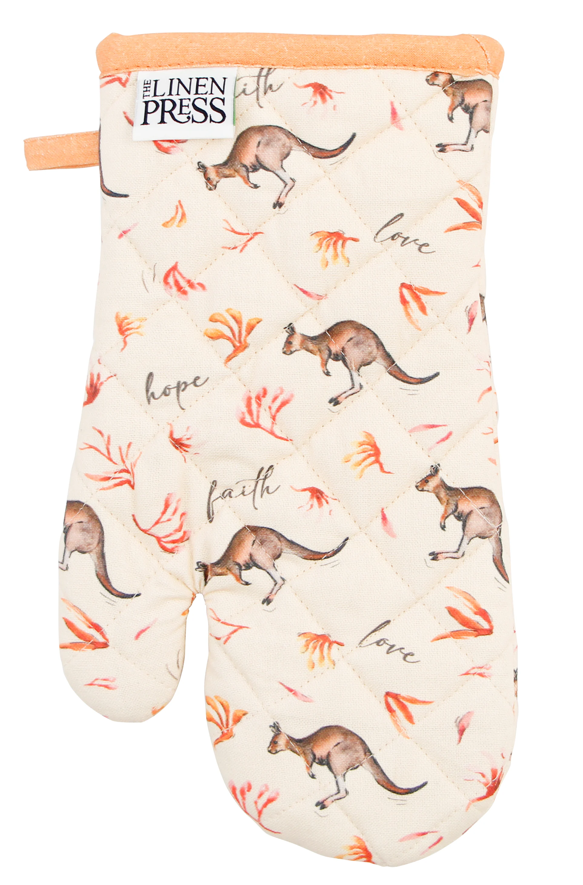 Single Oven Mitt: Kangaroo Faith, Hope, Love (Fig Hill Farm)