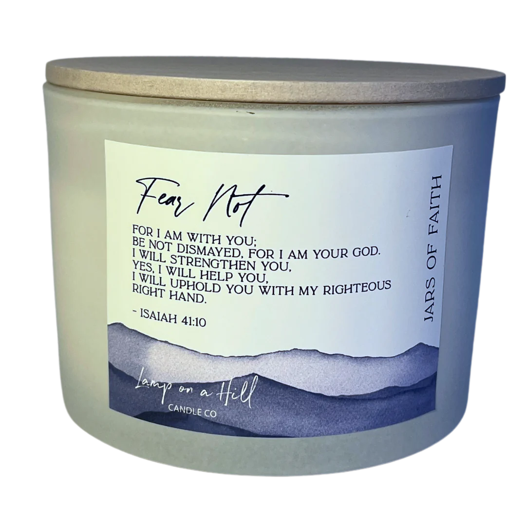 Soy Blend Candle (48 hours burn time, 330g): Jars of Faith, Fear Not, Isaiah 41:10, Violet Blue, Fragrance Peach Scent