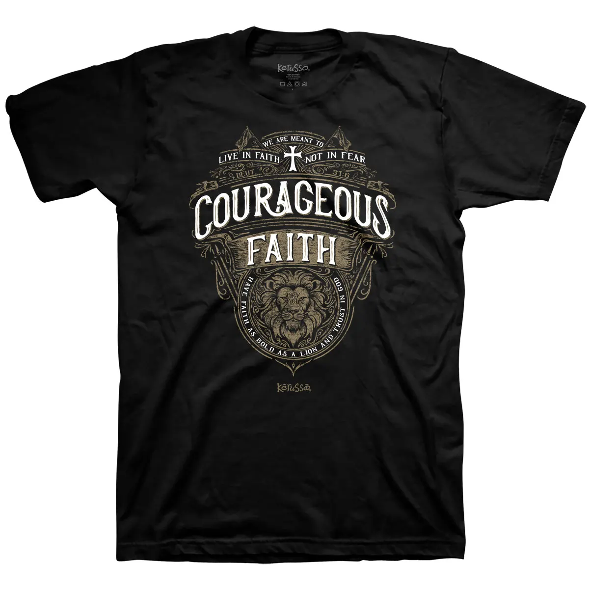 Courageous Faith™ Walk boldly in this powerful “Courageous Faith” T-shirt by Kerusso® in Black. Who or what can possibly stand in our way, when we are backed by the Lion of Judah, the King of Kings? Courageous faith means setting aside fear as we turn to the Savior. So, friend, what are you afraid of? Cast your cares on the Lord and keep going. He is with you, and His Word promises He will never leave you nor forsake you. Encourage others with that great Good News!