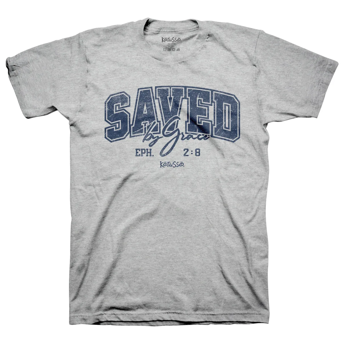 Saved By Grace⢠Celebrate your faith in this cool unisex āSaved By Graceā KerussoĀ® T-Shirt in Ash Grey. We donāt have to be top of the class, the town hero, or accomplished in any way to earn the favor of Godās grace; Heās already offered it, simply because He loves us. Who can you cheer on in this life, by telling them about the saving grace of Jesus Christ? Shout the Good News from every rooftop, and share it in a T-shirt. Youāll never regret telling others about Godās love for them, and itās as easy as getting dressed.
