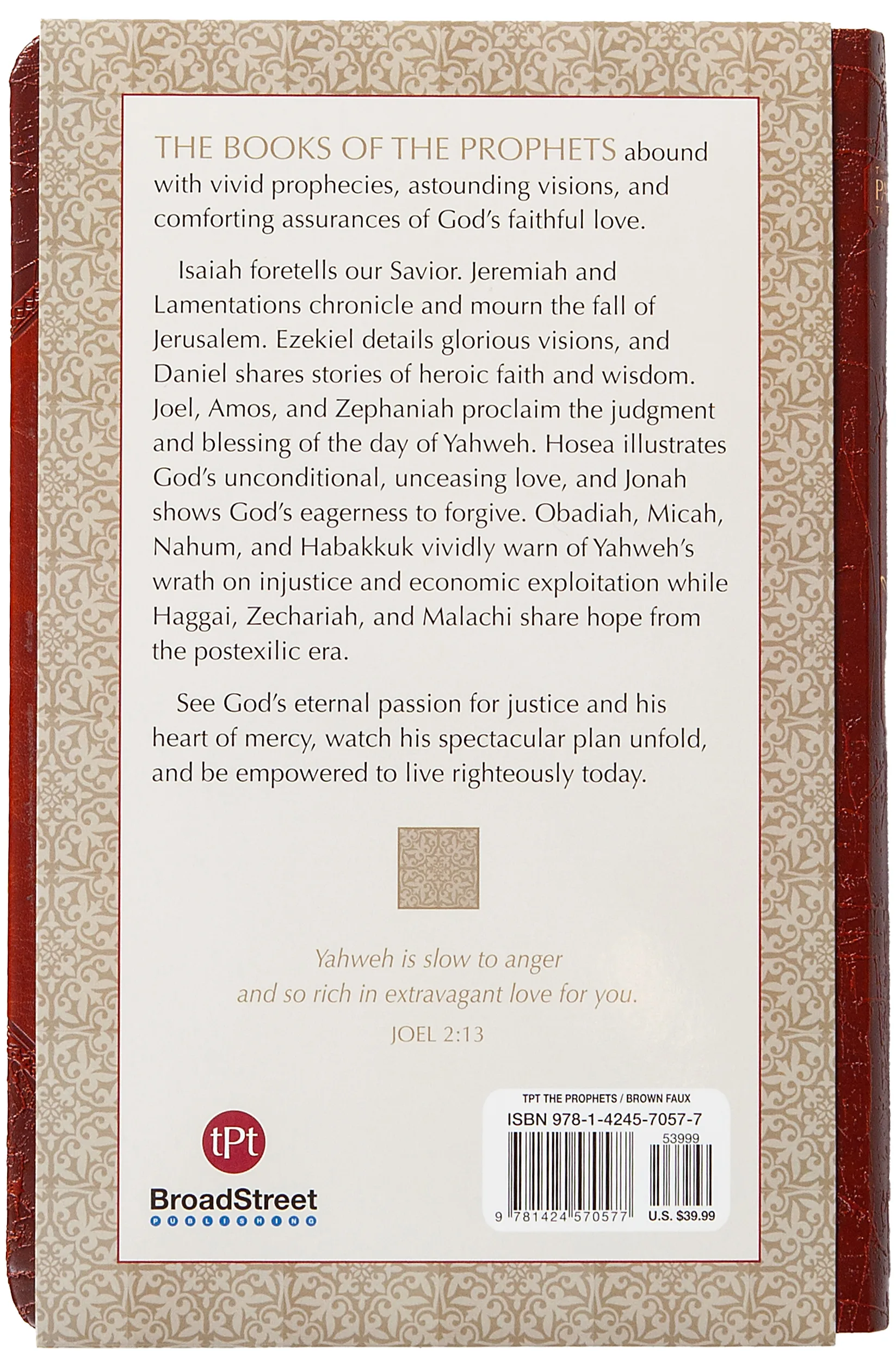 The books of the Prophets abound with vivid prophecies, astounding visions, and comforting assurances of God's faithful love. Isaiah foretells our Savior. Jeremiah and Lamentations chronicle and mourn the fall of Jerusalem. Ezekiel details glorious visions, and Daniel shares stories of heroic faith and wisdom. Joel, Amos, and Zephaniah proclaim the judgment and blessing of the day of Yahweh. Hosea illustrates God's unconditional, unceasing love, and Jonah shows God's eagerness to forgive. Obadiah, Micah, Nahum, and Habakkuk vividly warn of Yahweh's wrath on injustice and economic exploitation while Haggai, Zechariah, and Malachi share hope from the postexilic era. See God's eternal passion for justice and his heart of mercy, watch his spectacular plan unfold, and be empowered to live righteously today. Yahweh is slow to anger and so rich in extravagant love for you. Joel 2:13