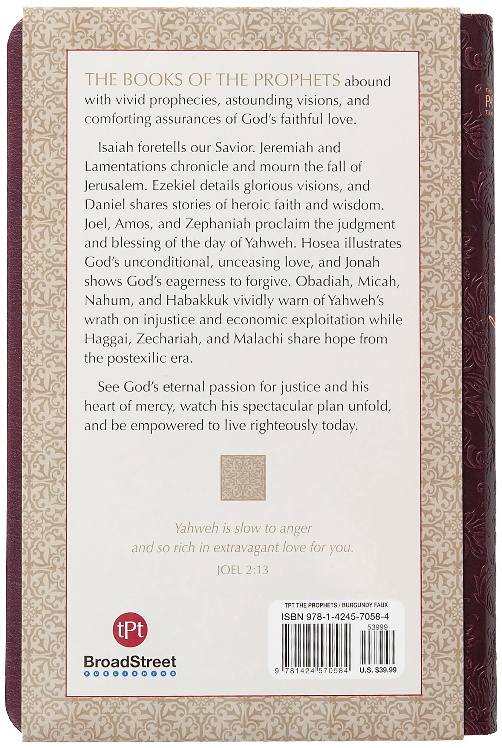 The books of the Prophets abound with vivid prophecies, astounding visions, and comforting assurances of God's faithful love. Isaiah foretells our Savior. Jeremiah and Lamentations chronicle and mourn the fall of Jerusalem. Ezekiel details glorious visions, and Daniel shares stories of heroic faith and wisdom. Joel, Amos, and Zephaniah proclaim the judgment and blessing of the day of Yahweh. Hosea illustrates God's unconditional, unceasing love, and Jonah shows God's eagerness to forgive. Obadiah, Micah, Nahum, and Habakkuk vividly warn of Yahweh's wrath on injustice and economic exploitation while Haggai, Zechariah, and Malachi share hope from the postexilic era. See God's eternal passion for justice and his heart of mercy, watch his spectacular plan unfold, and be empowered to live righteously today. Yahweh is slow to anger and so rich in extravagant love for you. Joel 2:13