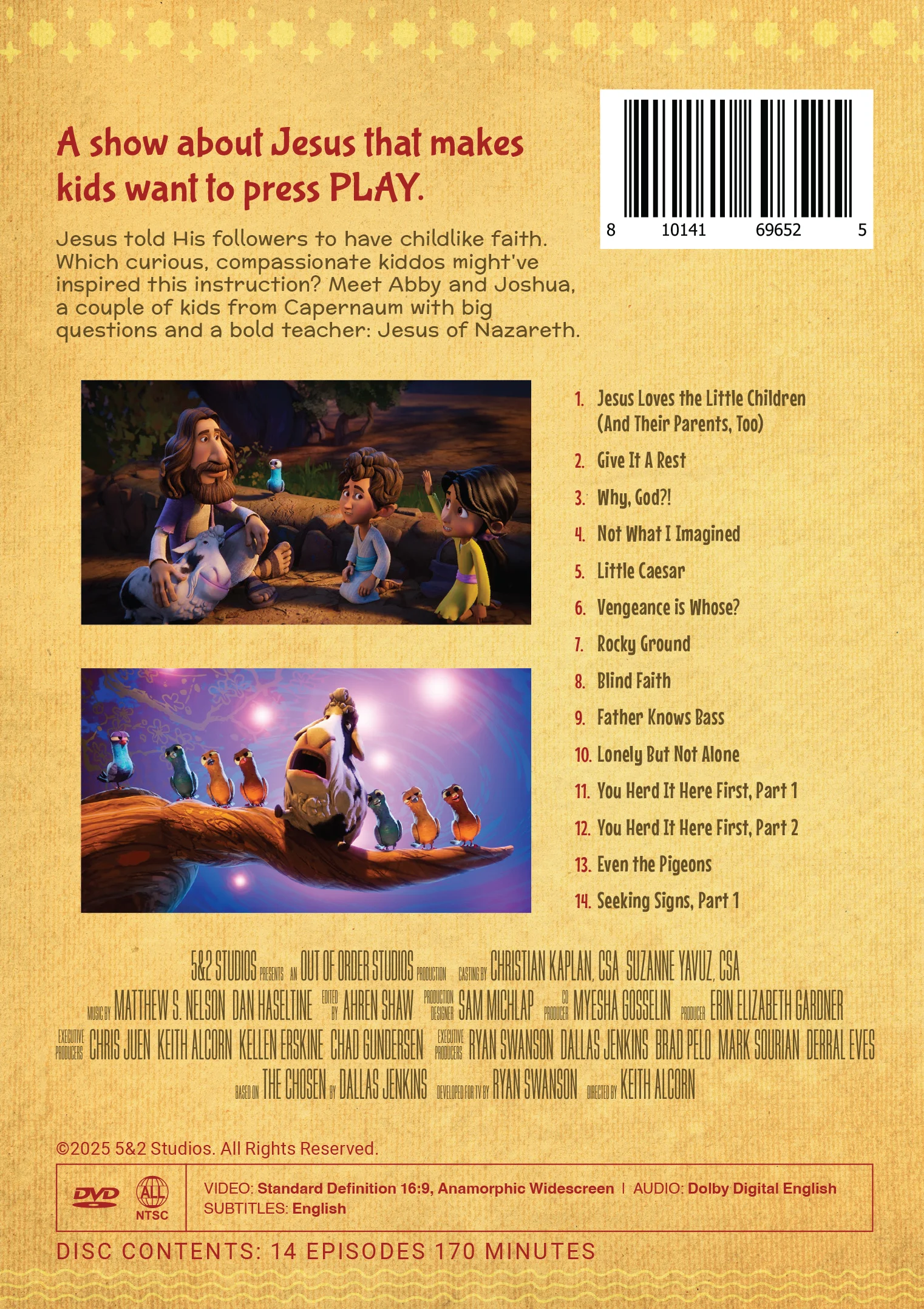 "The Chosen Adventures is an animated comedy series about 9-year-old Abby in the Galilean city of Capernaum. (Yup, the same Capernaum from The Chosen.) Abby has a deep desire to learn about the world, Torah, and...wasps. Really, anything and everything that catches her imagination. Her curiosity and good intentions are limitless — or so they seem to her salt-of-the-earth parents. Abby and her best friend, Joshua, encounter a kind craftsman and teacher, Jesus of Nazareth. Abby is instantly taken with Jesus and His teachings. Abby’s adventures — and her ginormous personality — spread Jesus’ influence far and wide (among her 6 to 12-year-old peers) and change the way she sees the world. Follow Abby’s journey as she goes on exciting adventures, makes new friends, and learns from the greatest teacher in history. Did we mention she’s followed around by a talking sheep and pigeon?