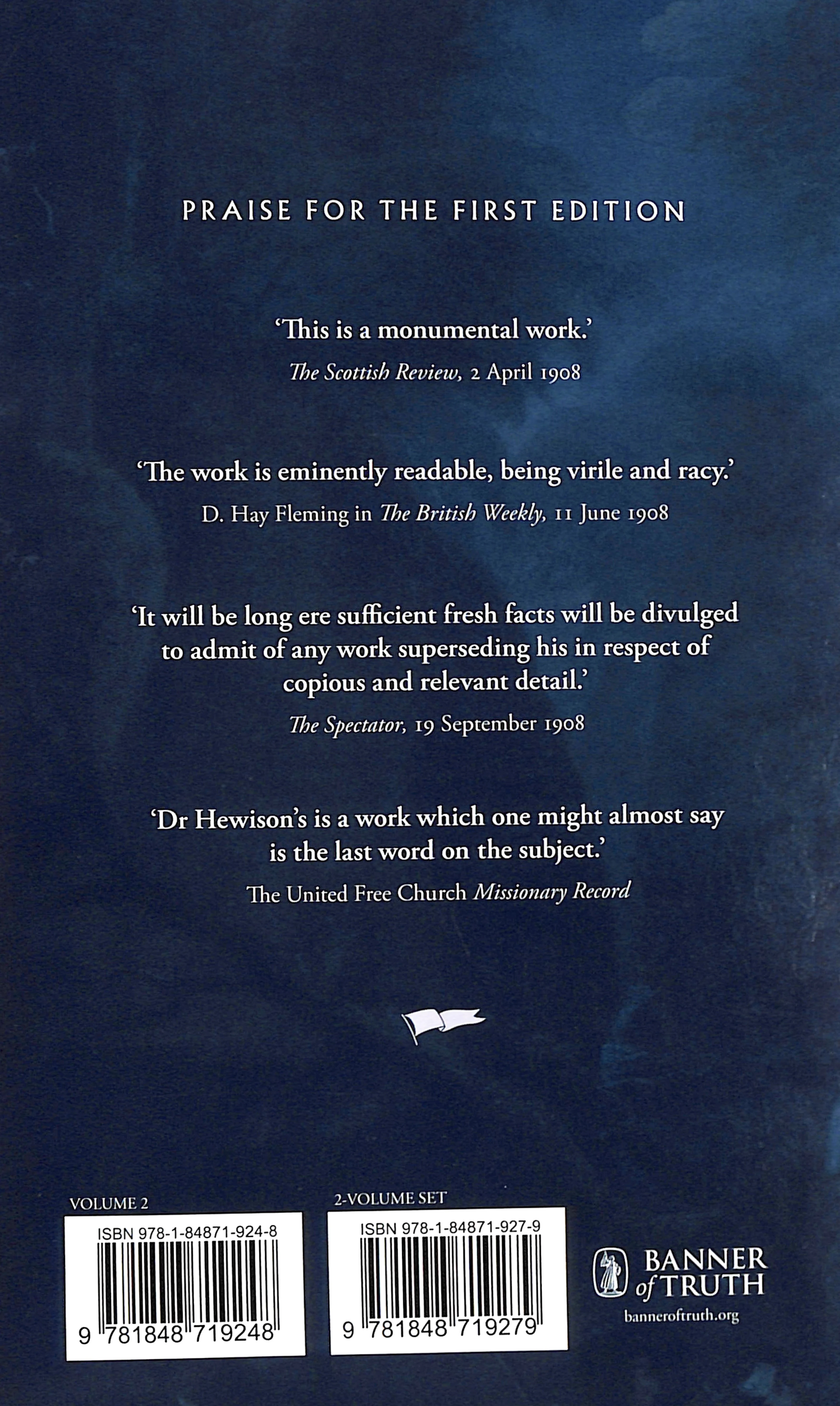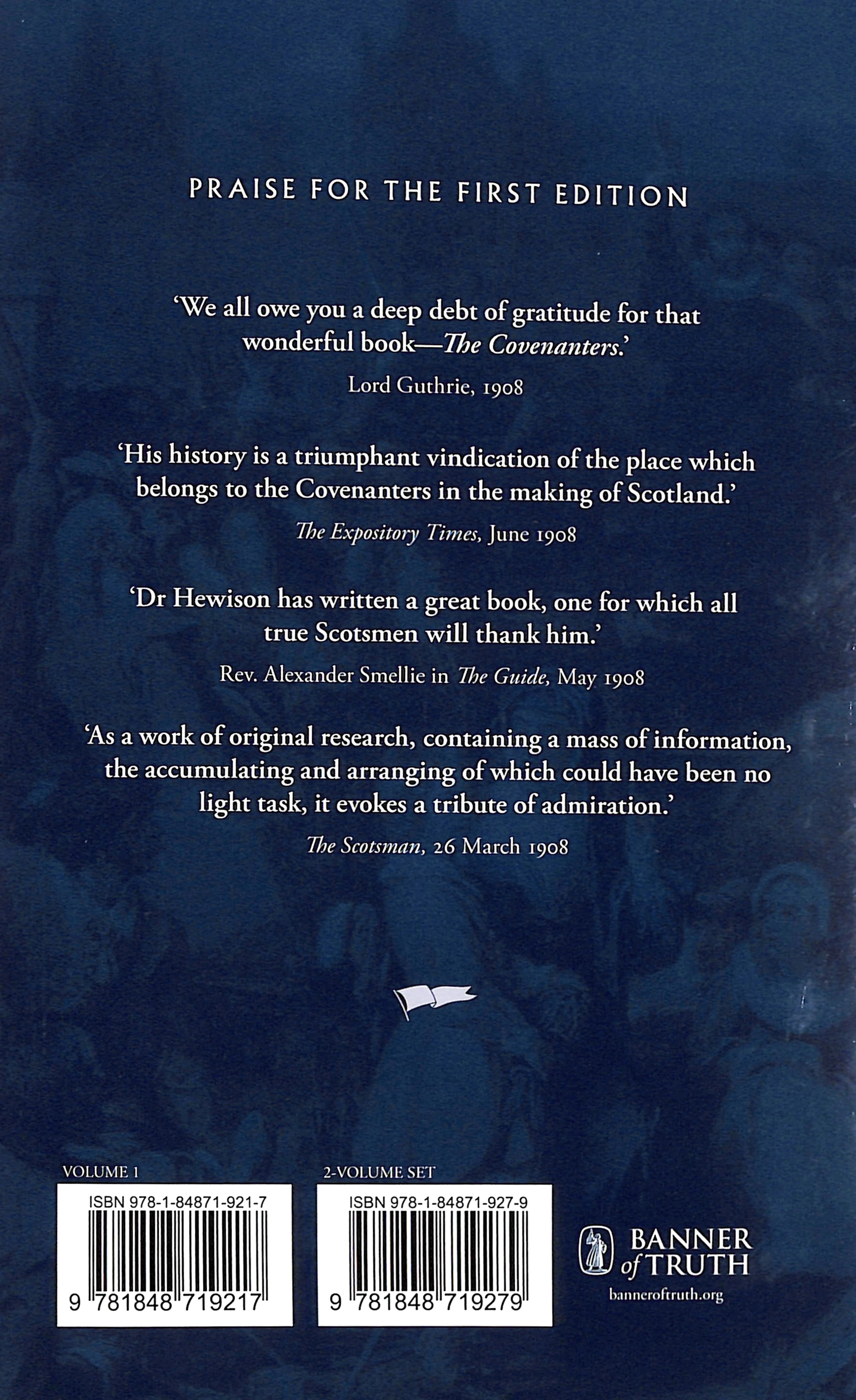 This 2 volume set by J.K. Hewison details the remarkable events of the scottish covenanting period. 'The value of this book lies in the fact that it shows the men of the Covenants and their deeds in such a way that the student of history may calmly judge them' - John Herkless