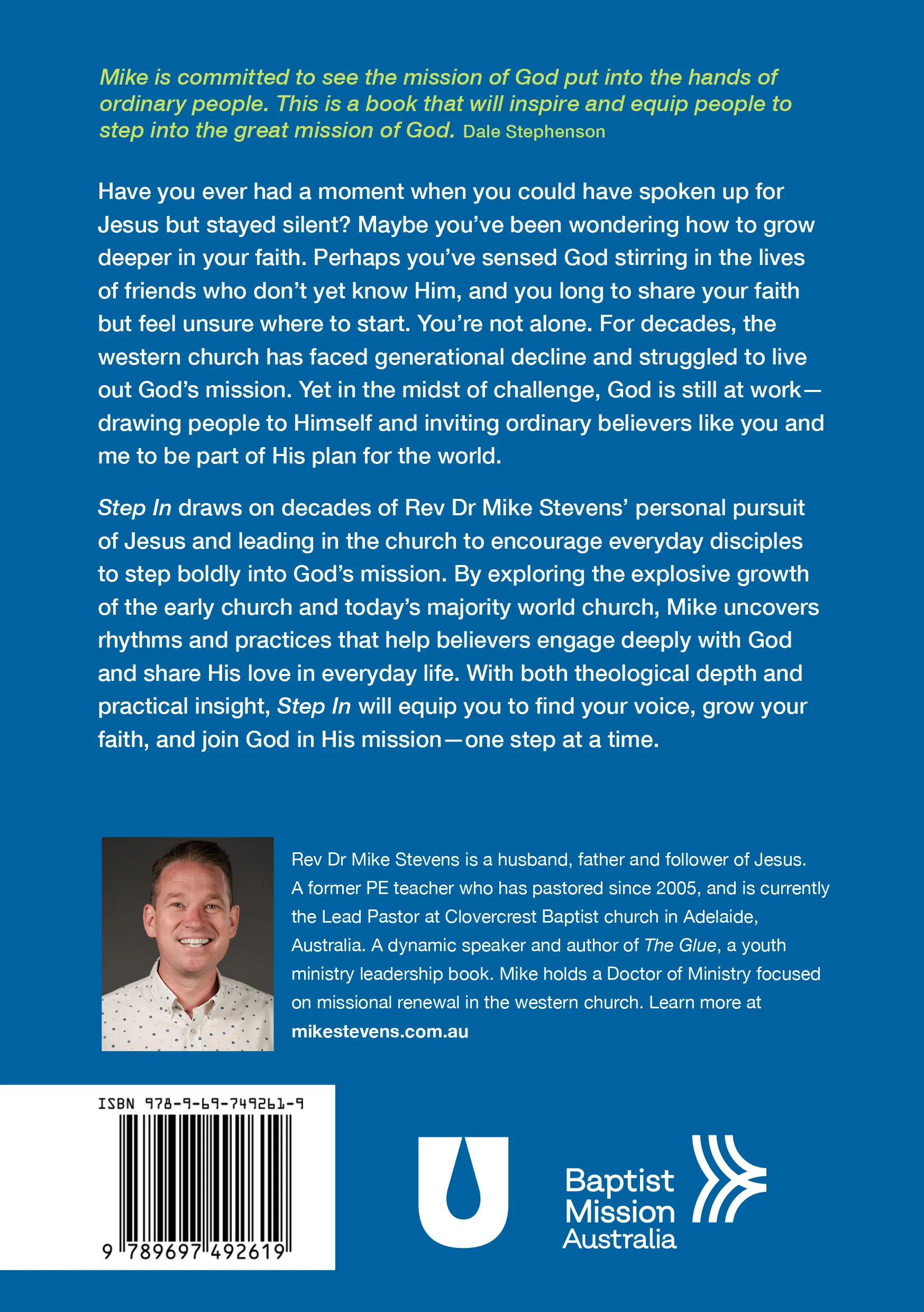 Step In by Rev Dr Mike Stevens is a timely and inspiring call for everyday Christians to participate in God’s mission. Rev Bree Mills Canon of Church Planting, Anglican Diocese of Melbourne