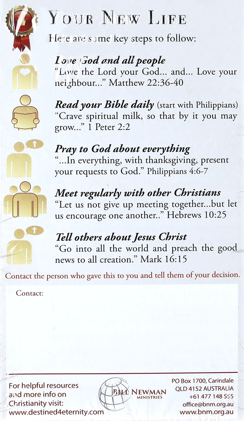 This premium tract, authored by Dr. Bill Newman, is a simple and clear Gospel presentation examining the Greatest Sentence Ever Spoken. This sentence is the Words of Jesus Christ Himself, recorded in John's Gospel. Of course, John 3:16. This tract looks at each phrase, it's importance to life today and it's implications for eternity. Presenting the reader with a clear pathway to committing their lives to Christ, this tract will a great blessing to all whom you present it.