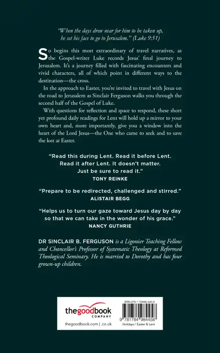 Journey with Jesus on the road to Jerusalem with these reflections for Lent by Sinclair Ferguson. As you walk through the second half of Luke's Gospel, you'll meet the people Jesus encountered on the way to the cross-and prepare your heart to appreciate his death and resurrection afresh. Each day you'll be invited to: * Read a passage of Luke's Gospel and a short meditation by Sinclair Ferguson * Reflect on a thought-provoking question * Respond in prayer and praise Pithy yet profound, these devotions will hold up a mirror to your own heart and, more importantly, give you a window into the heart of the Lord Jesus-the one who came to seek and to save the lost at Easter.