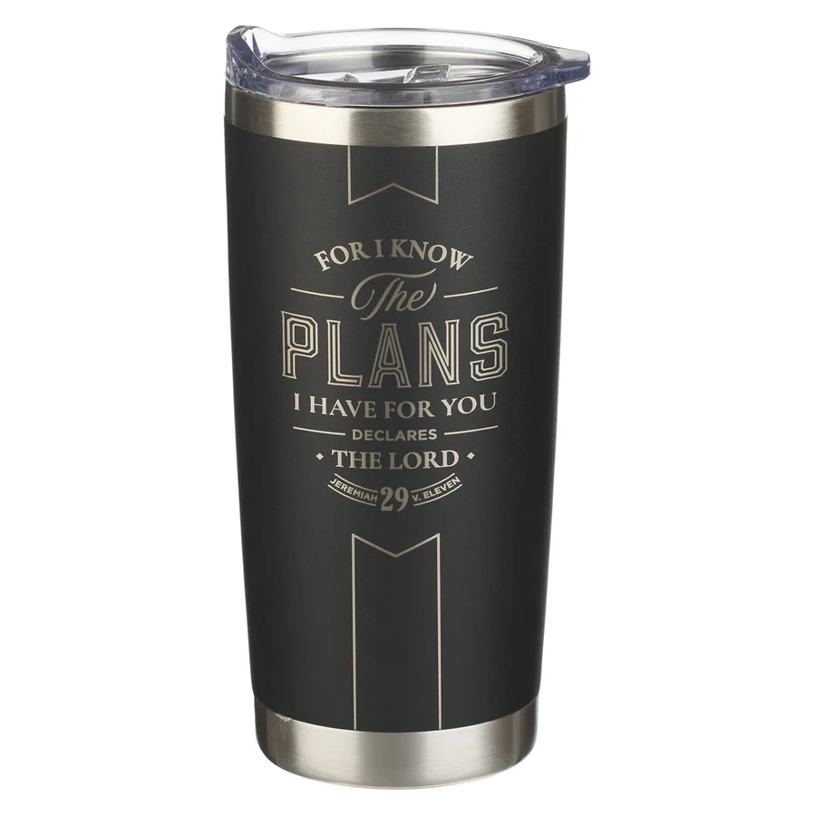Tumbler Stainless Steel (532 ml): I Know the Plans (Jer. 29:11), Black (The Plans Charcoal Collection)