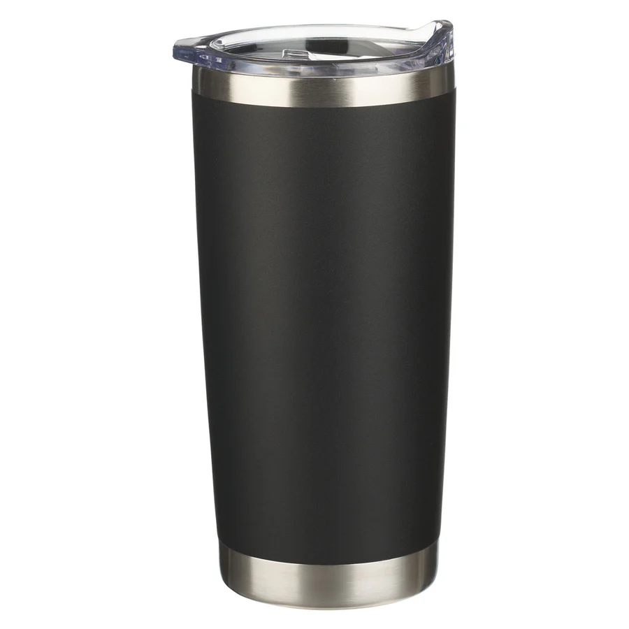 Double-wall insulated Powder-coated Keeps beverage hot or cold for up to 24 hours Not microwave or freezer safe Hand-wash recommended Retractable sip-hole cover