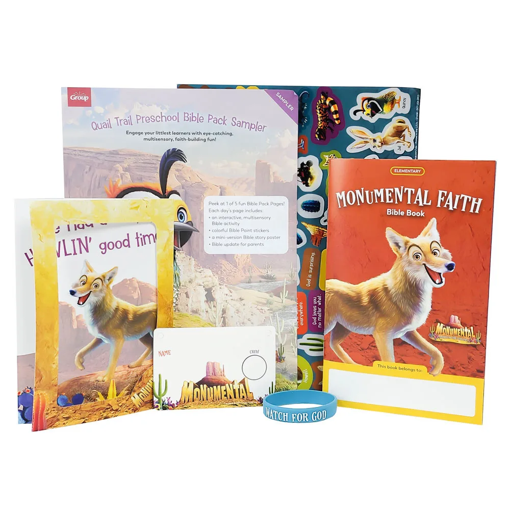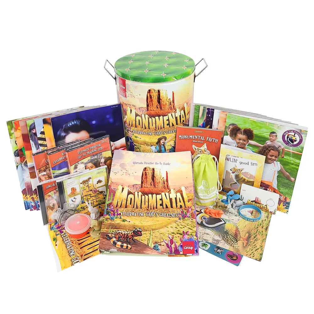 Your Starter Kit comes filled with everything you need to start planning a truly memorable Monumental vacation Bible school. The Ultimate Director Go-To Guide and Leader Manuals provide step-by-step instructions. Plus, you'll get student resource samples, volunteer resources, a Monumental catalog packed with program products, and essential media tools.