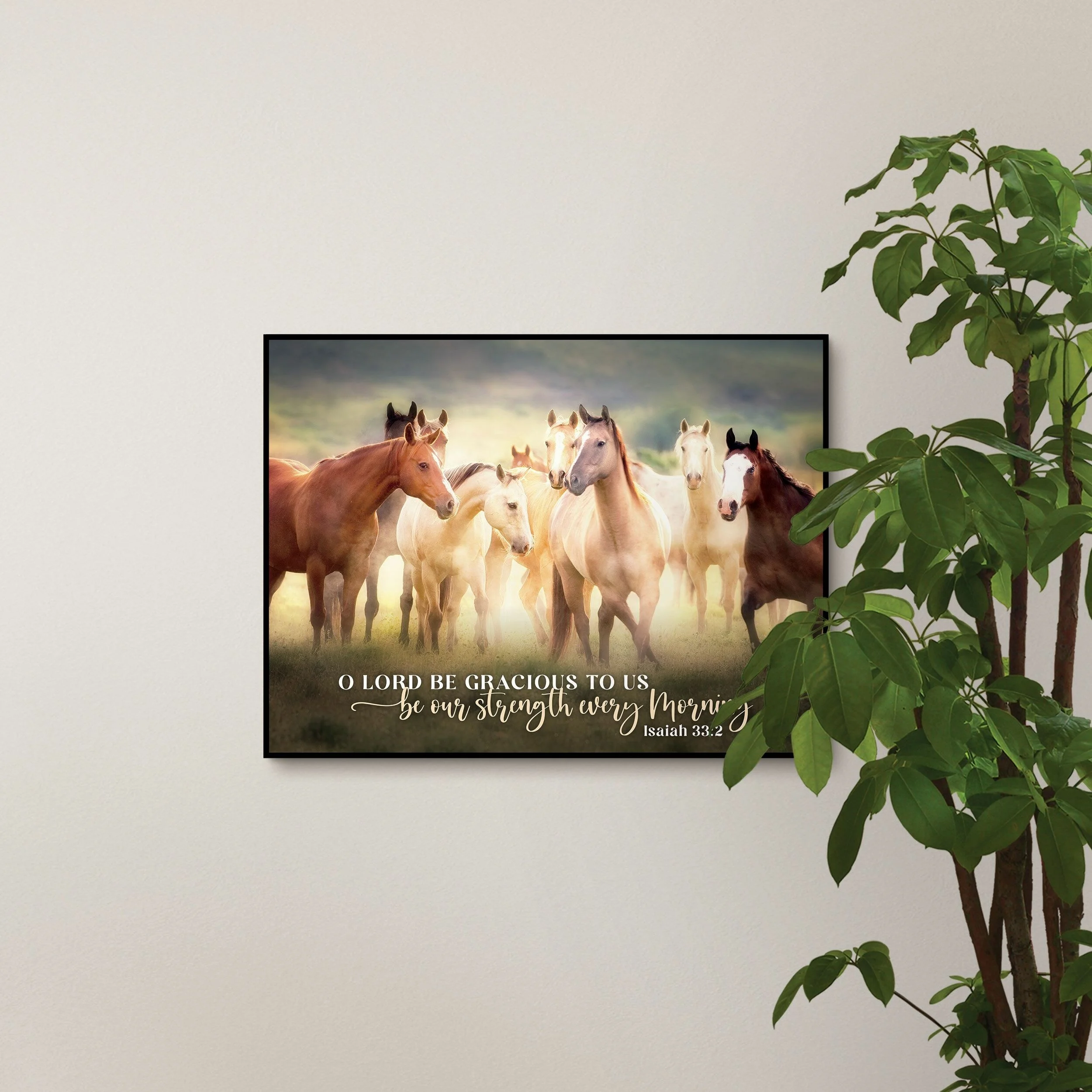 Wall Art, Mdf: O Lord Be Gracious, Isaiah 33:2, Horses, Milled Hanger Hole