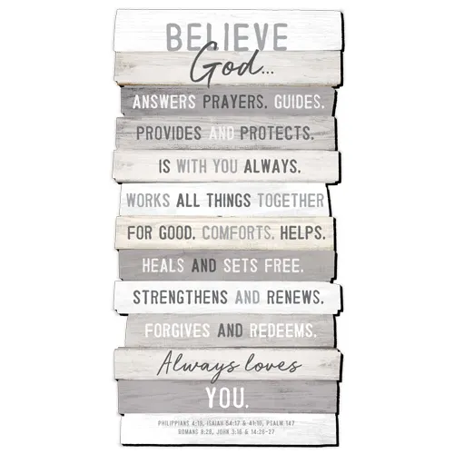 Wall Plaque: Believe, Stacked Wood, Mdf, Wall-Hanger Included