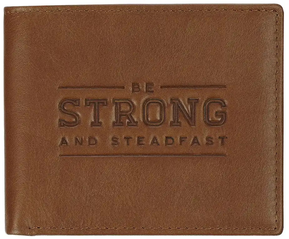 Wallet Leather: Be Strong and Steadfast (Deut. 31:6) Tan, RFID blocking