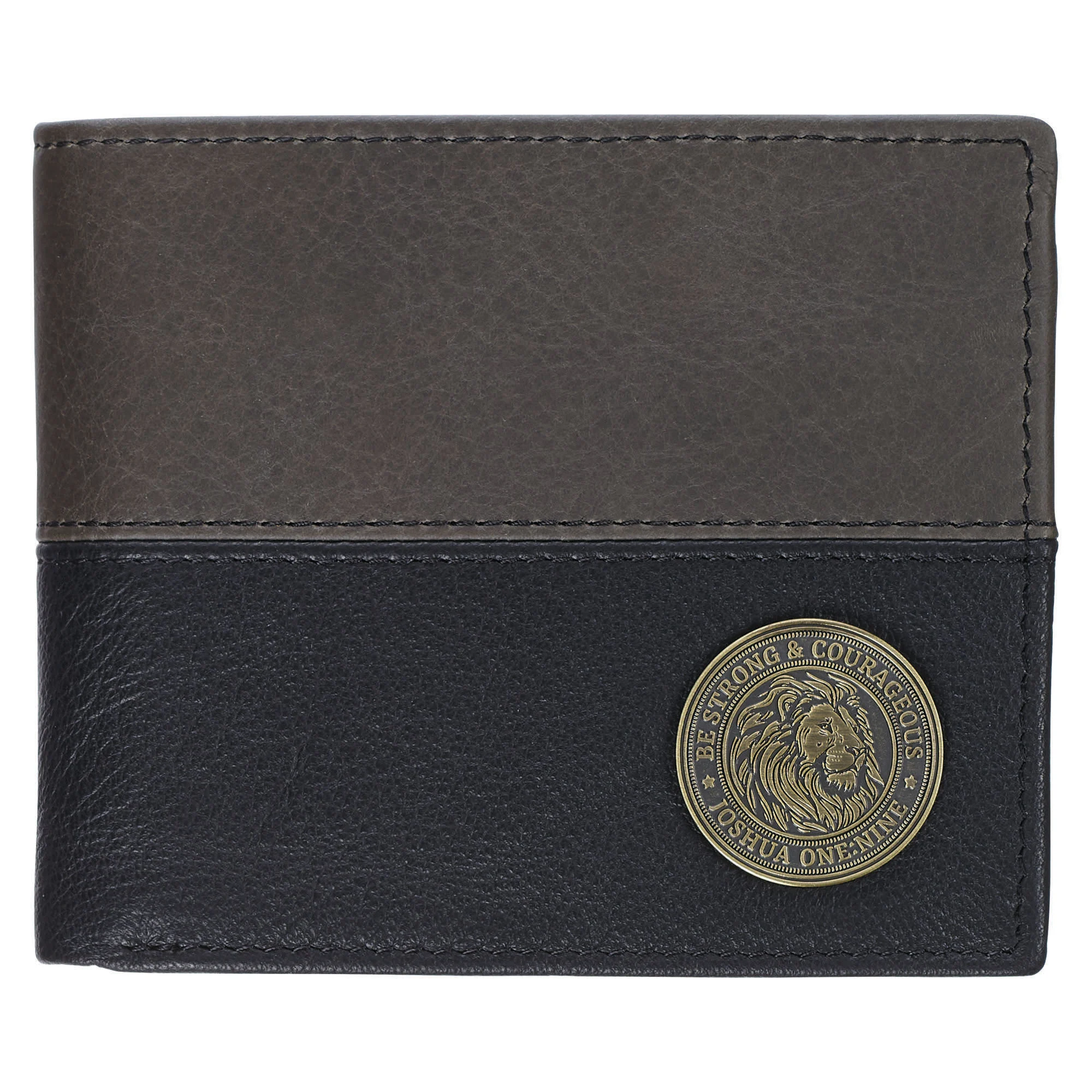 The sleek modern design of the Strong and Courageous Black and Gray Full Grain Leather Wallet with Metal Badge has an appeal that will complement any man's style, but it also comes with a biblical admonition to stand firm in the faith!