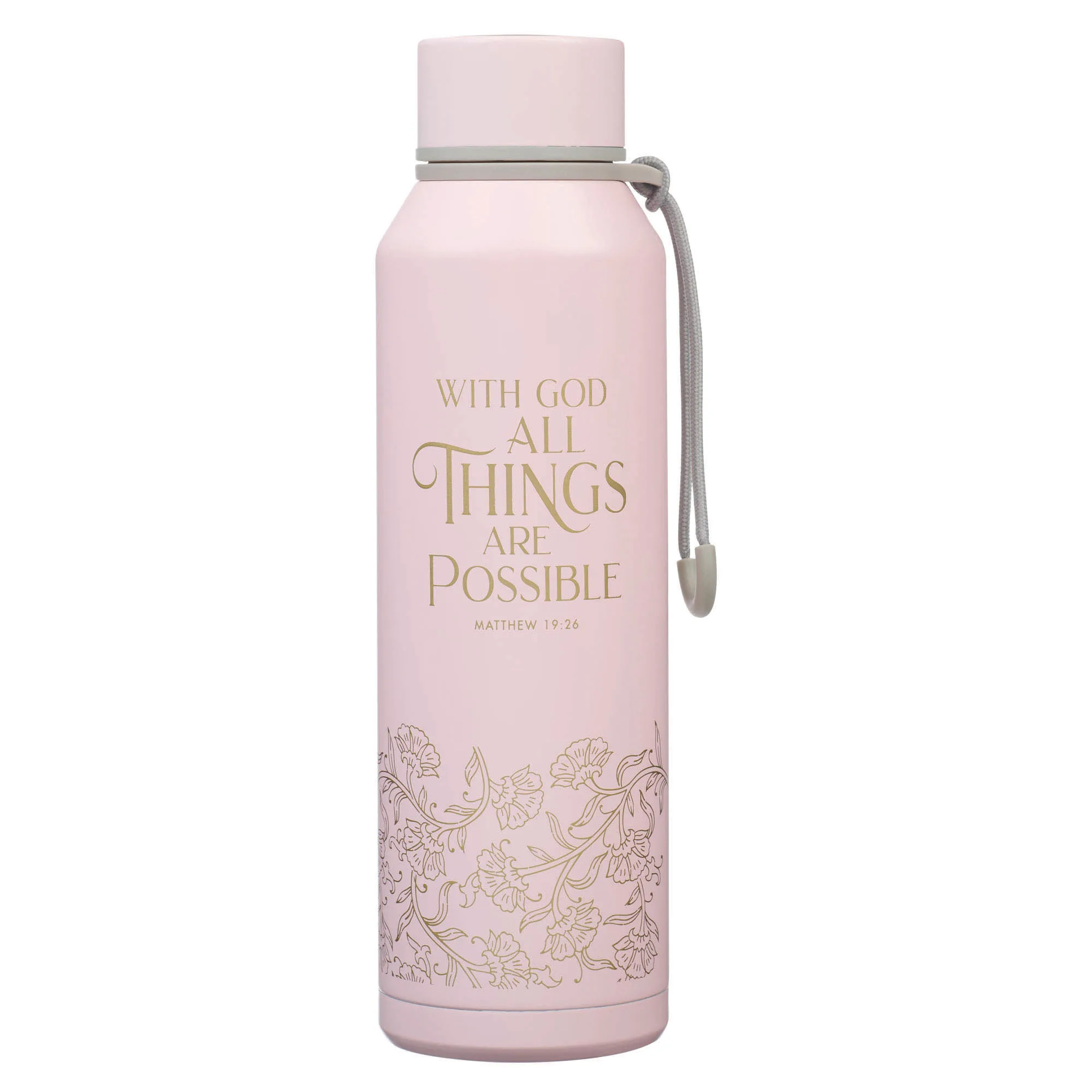Water Bottle, Stainless Steel: Pink With God Matt. 19:26
