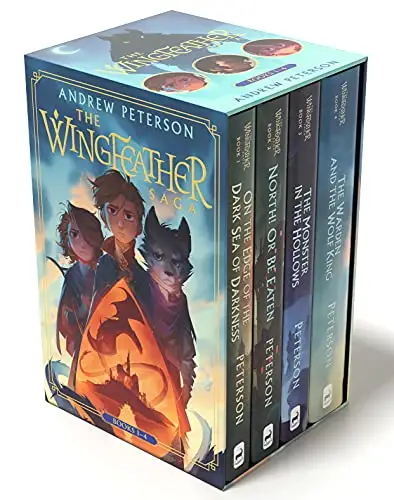 This collectible boxed set features paperback editions of all four novels in the beloved, bestselling Wingfeather Saga, with more than one million copies sold! NOW AN ANIMATED SERIES: Based on Andrew Peterson's epic fantasy novels--starring Jody Benson, Henry Ian Cusick, and Kevin McNally. Executive Producer J. Chris Wall with Shining Isle Productions, and distributed by Angel Studios. This collection of Andrew Peterson's Wingfeather Saga includes all four novels in paperback: On the Edge of the Dark Sea of Darkness, North! Or Be Eaten, The Monster in the Hollows, and The Warden and the Wolf King.